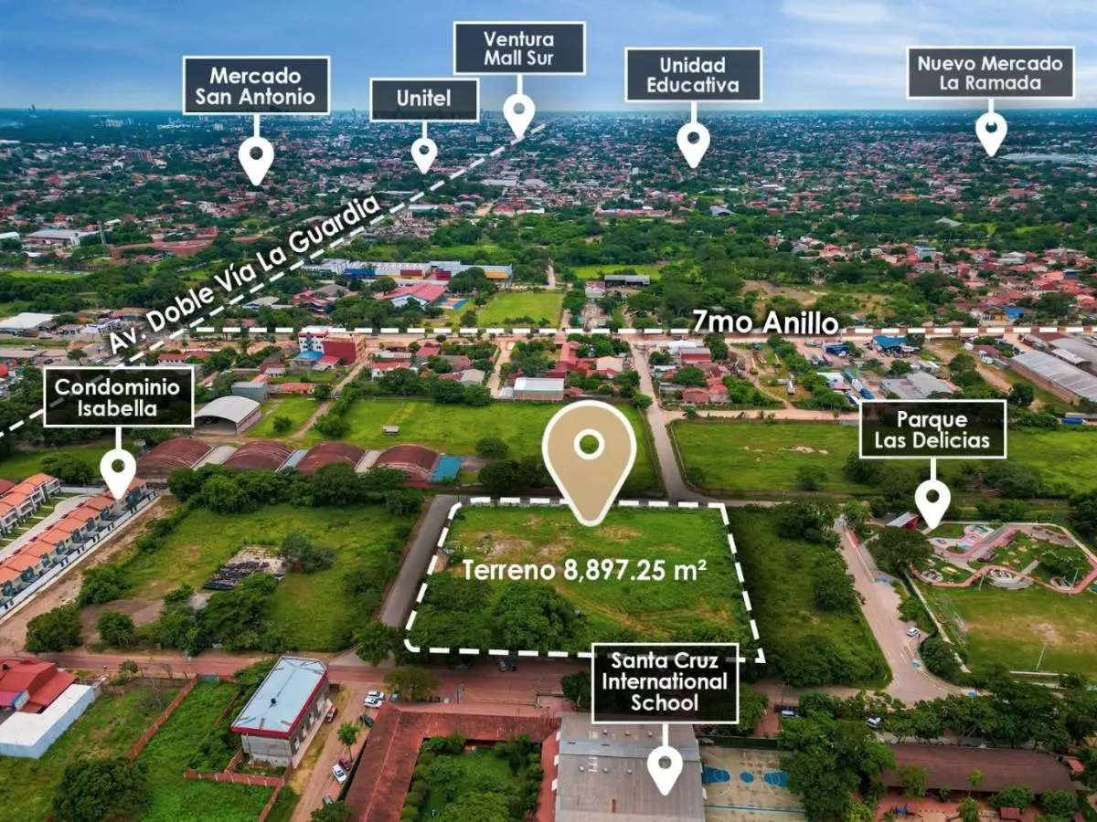 Ubicación privilegiada: Frente al Santa Cruz International School, con acceso a tres calles y rodeado de instituciones educativas y empresas.