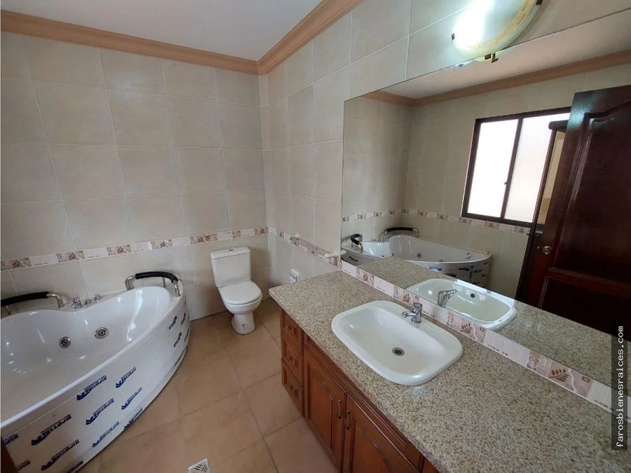 Dispone de living comedor con chimenea, bar, baño de visitas, escritorio, un dormitorio en planta baja, cocina, comedor de diario, despensa, en planta alta, dos suites junior y una suite matrimonial, sala de estar íntima, área de lavado, jardín alrededor y un churrasquero techado.