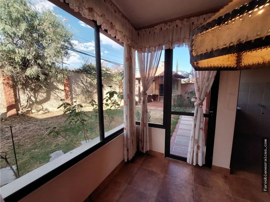 Confortable casa estilo colonial, en condominio de solo 5 unidades, es sector privilegiado a pasos Av. Caracol de Trojes Tiquipaya, excelente vecindario, próximo colegio Tiquipaya, High School y AISB , farmacias, supermercados, restaurantes, transporte público.
