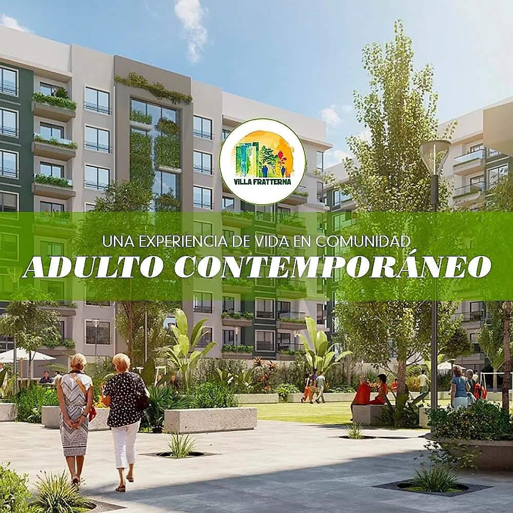 VILLA FRATTERNA Condominio Senior para el Adulto Contemporáneo, un proyecto ecológico y respetuoso del medio ambiente; tiene a disposición departamentos de 1 y 2 dormitorios con todas las dependencias, innovación en áreas comunes, hermosas áreas verdes y módulos de servicios.