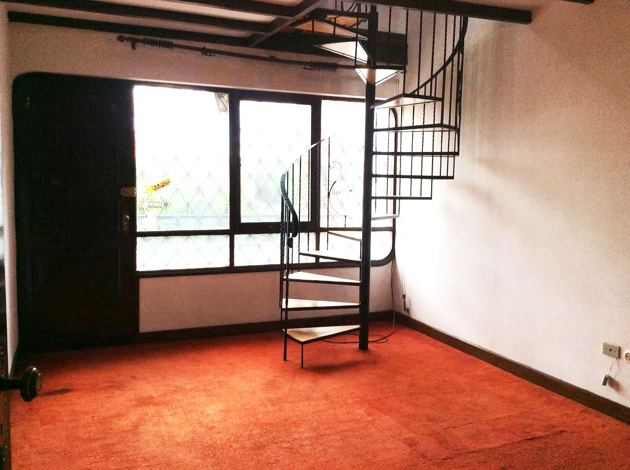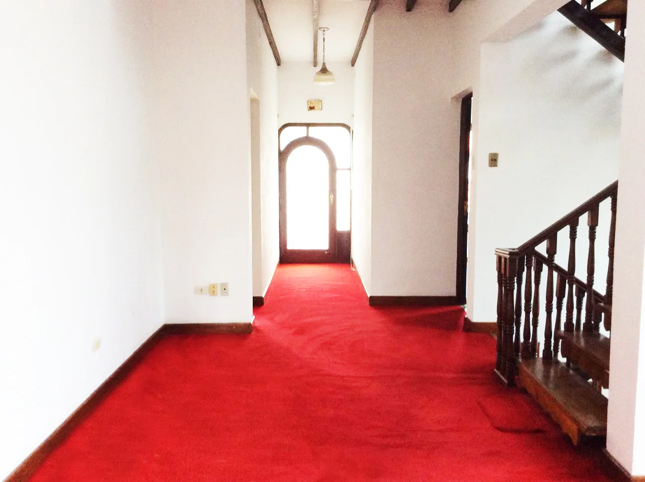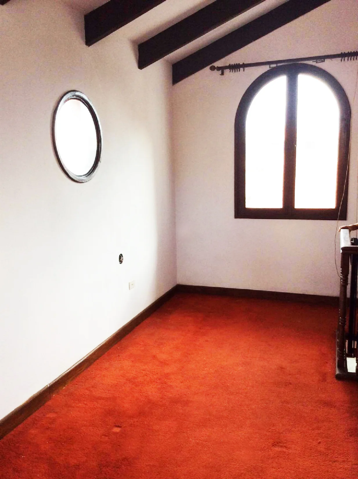 Un mezzanine amplio con escaleras y balcón de madera.