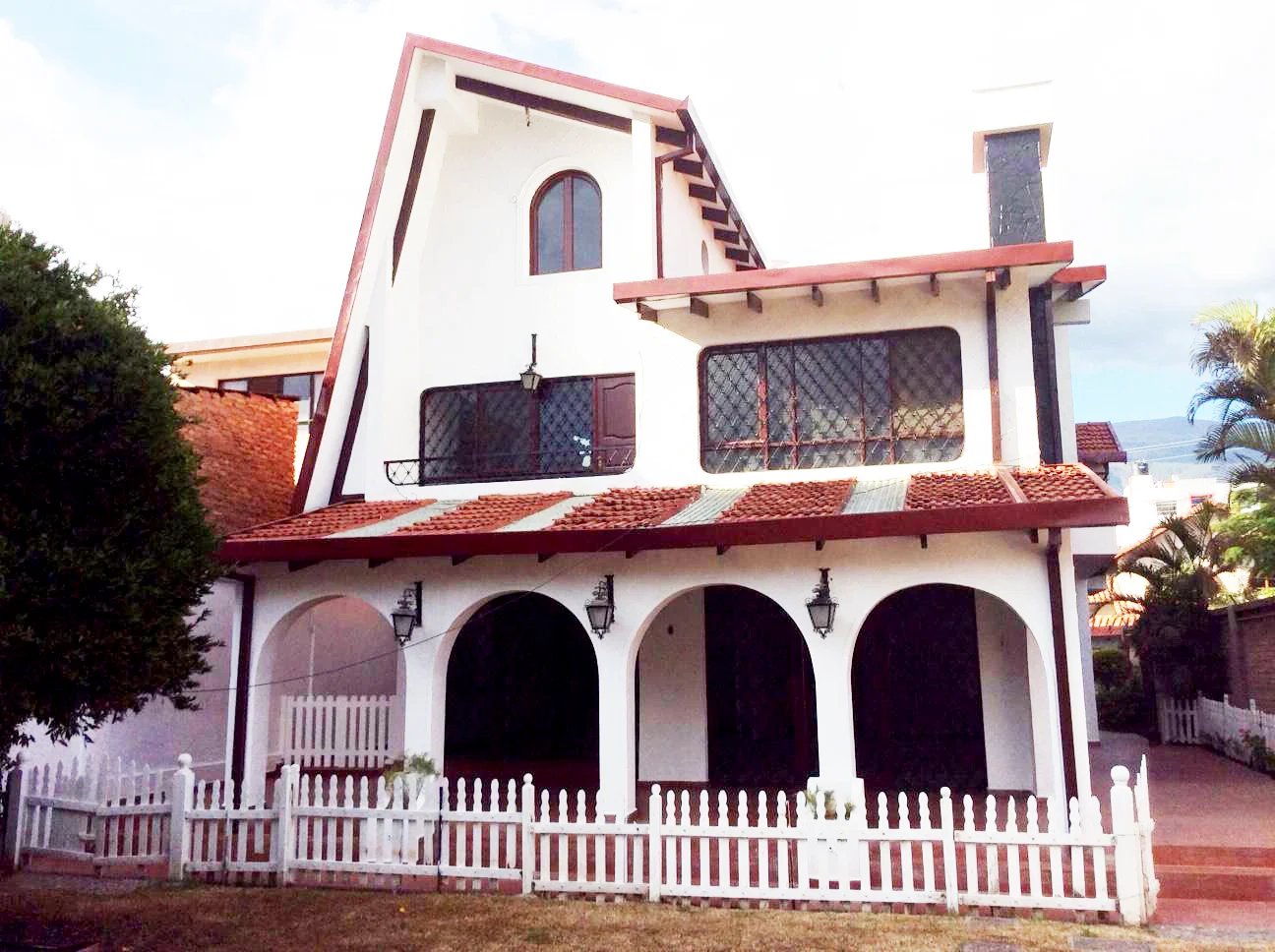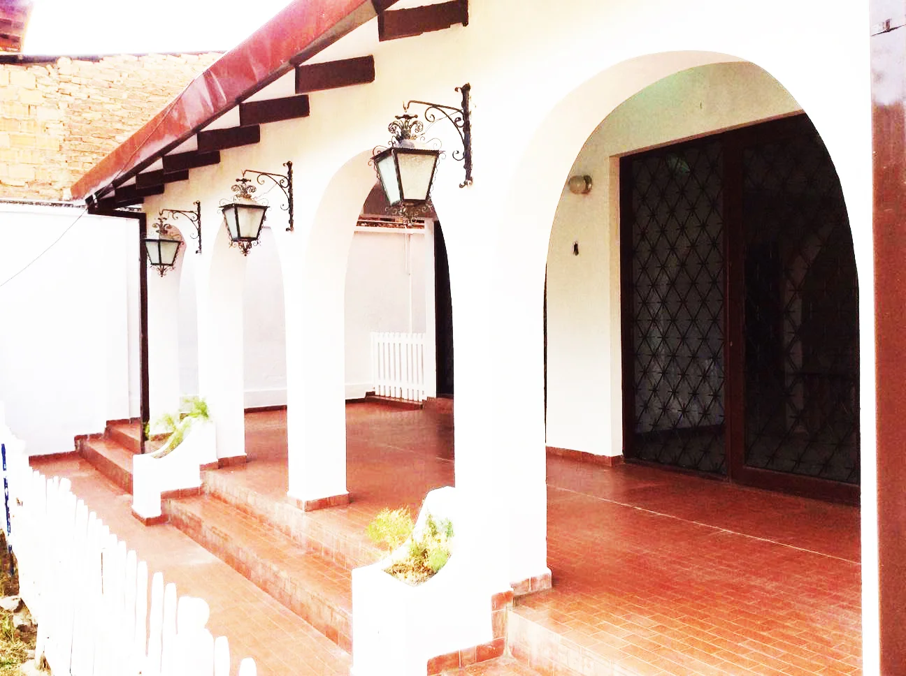 Exteriores: Galería techada con hermosos arcos, acceso a la cocina y living, garaje para 2 vehículos, lavandería, hermoso jardín con árboles frutales y flores.