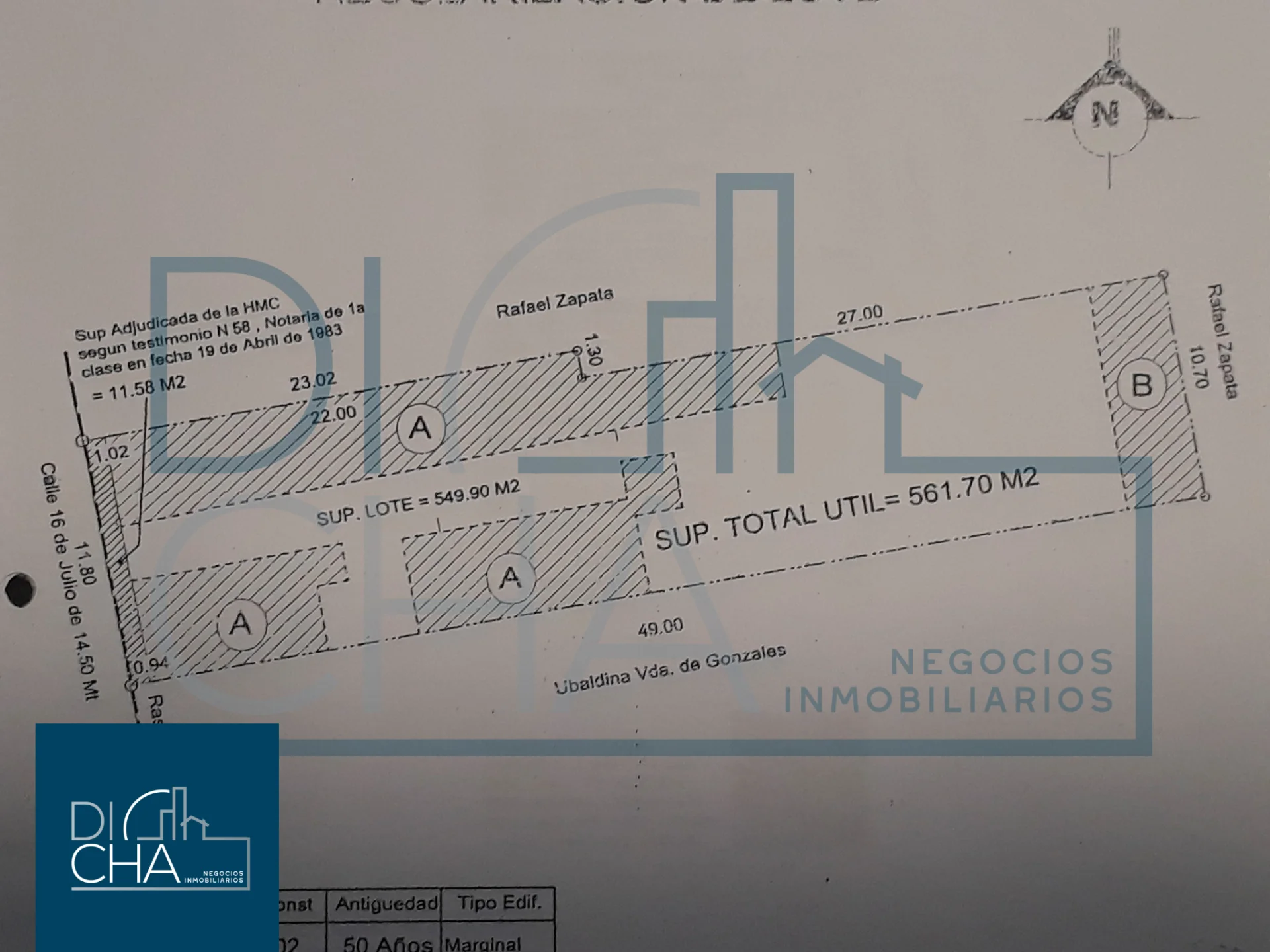 Casa como Lote de 562 metros cuadrados, frente de 11,80 metros.