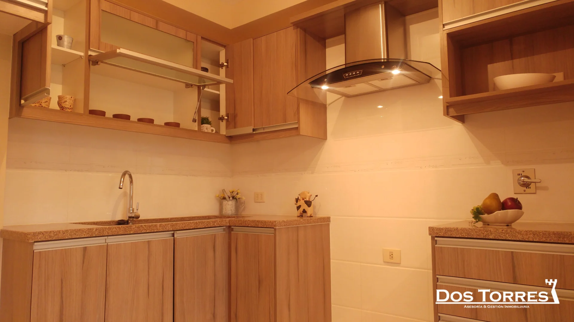 - Cocina con cajonería alta y baja con extractor y calefón a gas