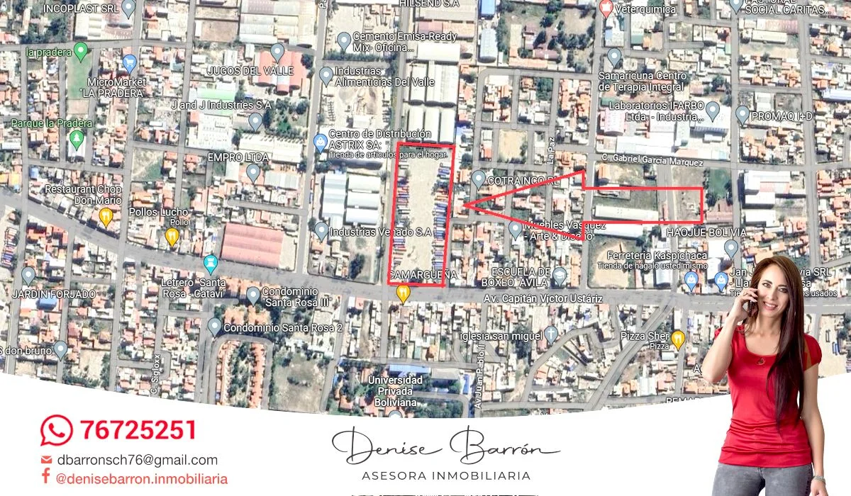CARACTERÍSTICAS: Espectacular terreno en esquina sobre la Av. Victor Ustariz, a 2 cuadras de la Av. Blanco Galindo.