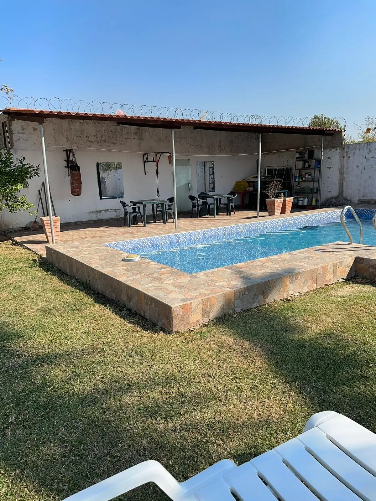- Amplia piscina de 10x5 metros** , ideal para relajarse y disfrutar del sol.