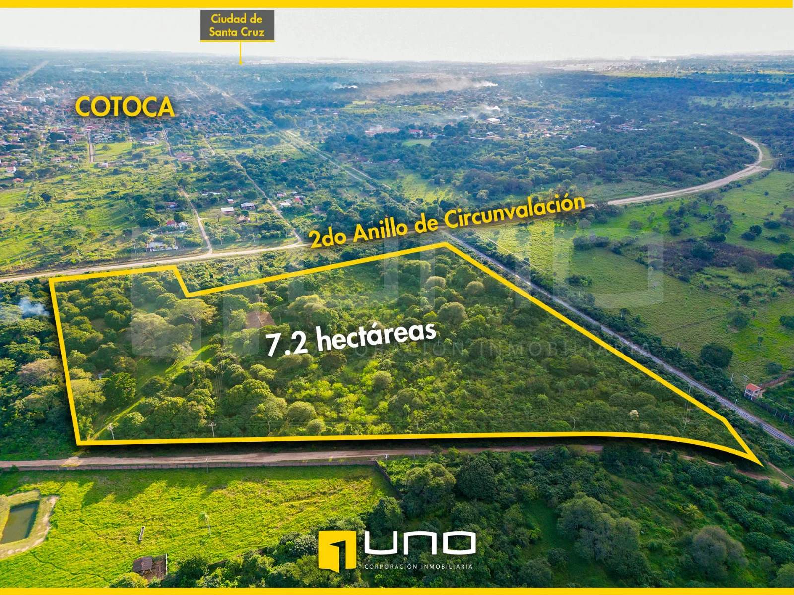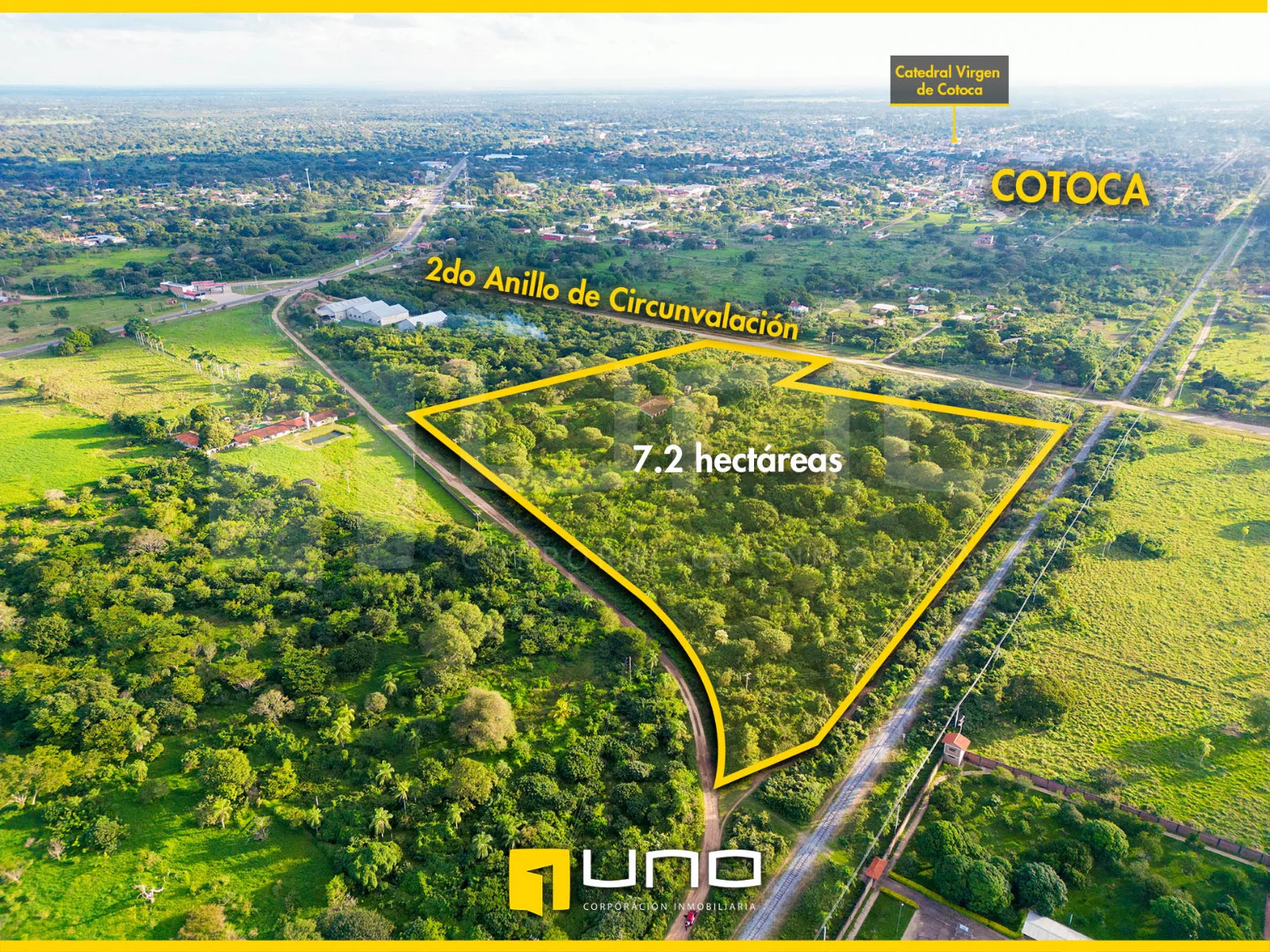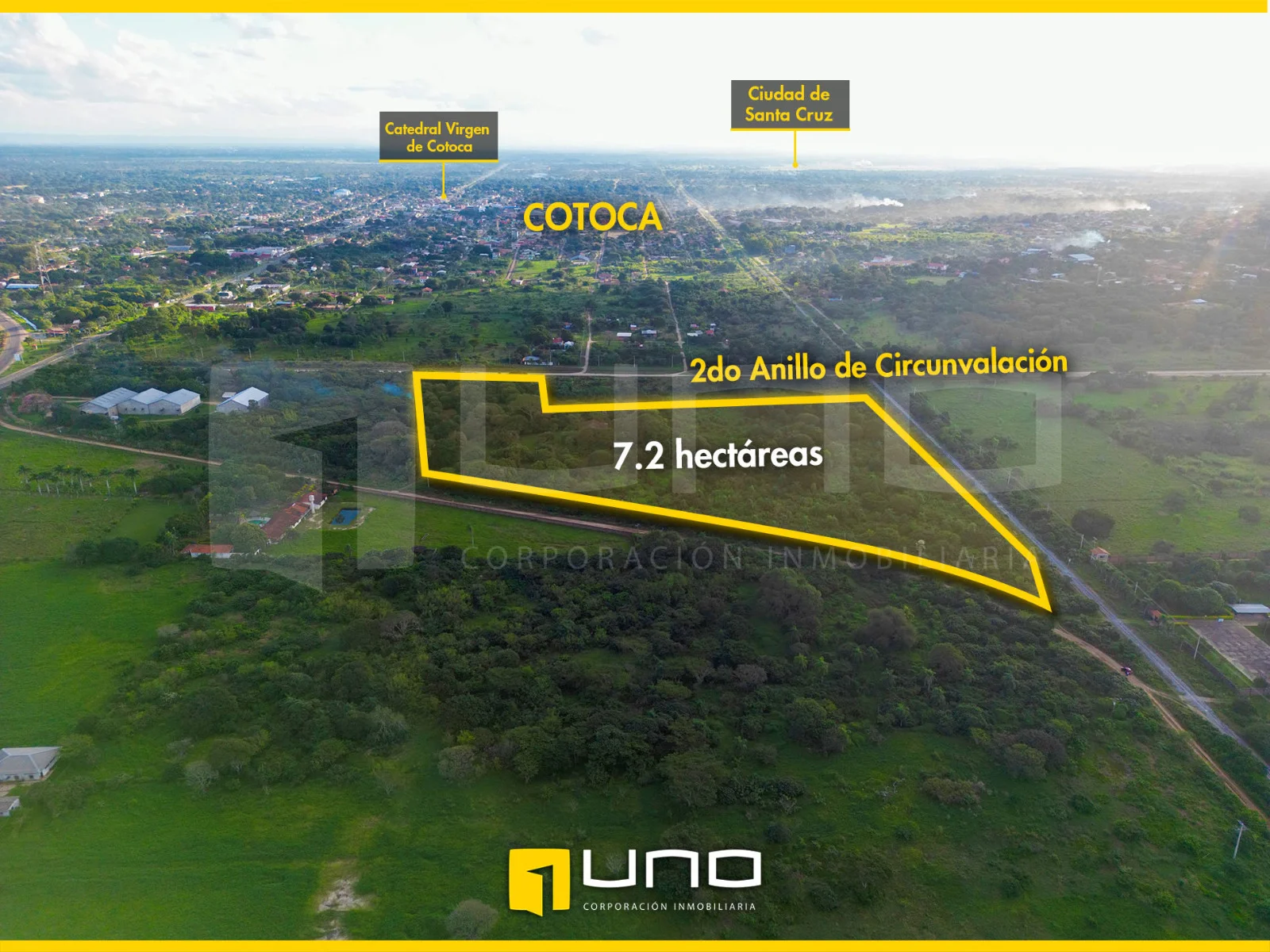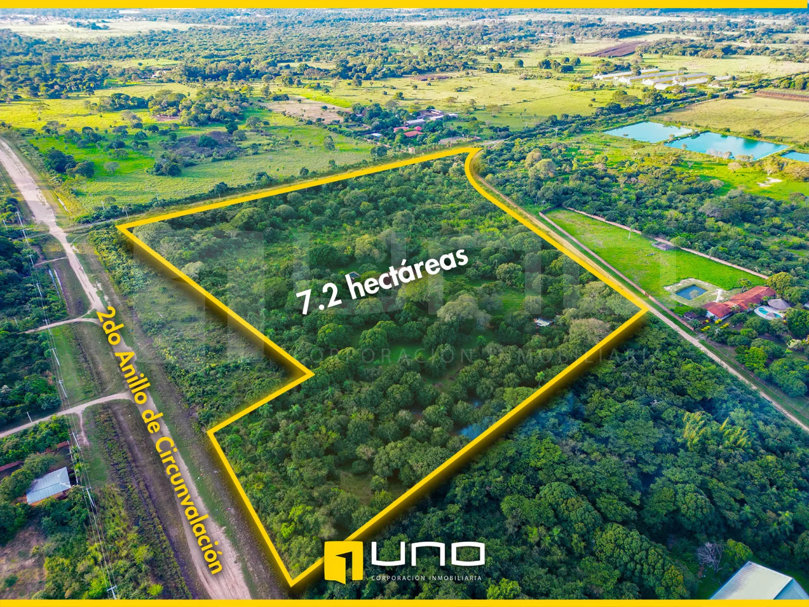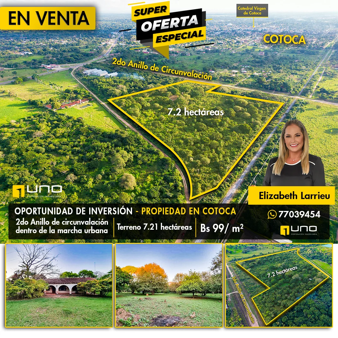 En un terreno de 7.21 hectáreas ubicado en el 2do anillo de Cotoca. Esta propiedad goza de una ubicación estratégica, situada dentro de la marcha urbana y en el segundo anillo de circunvalación, en una zona cercana a