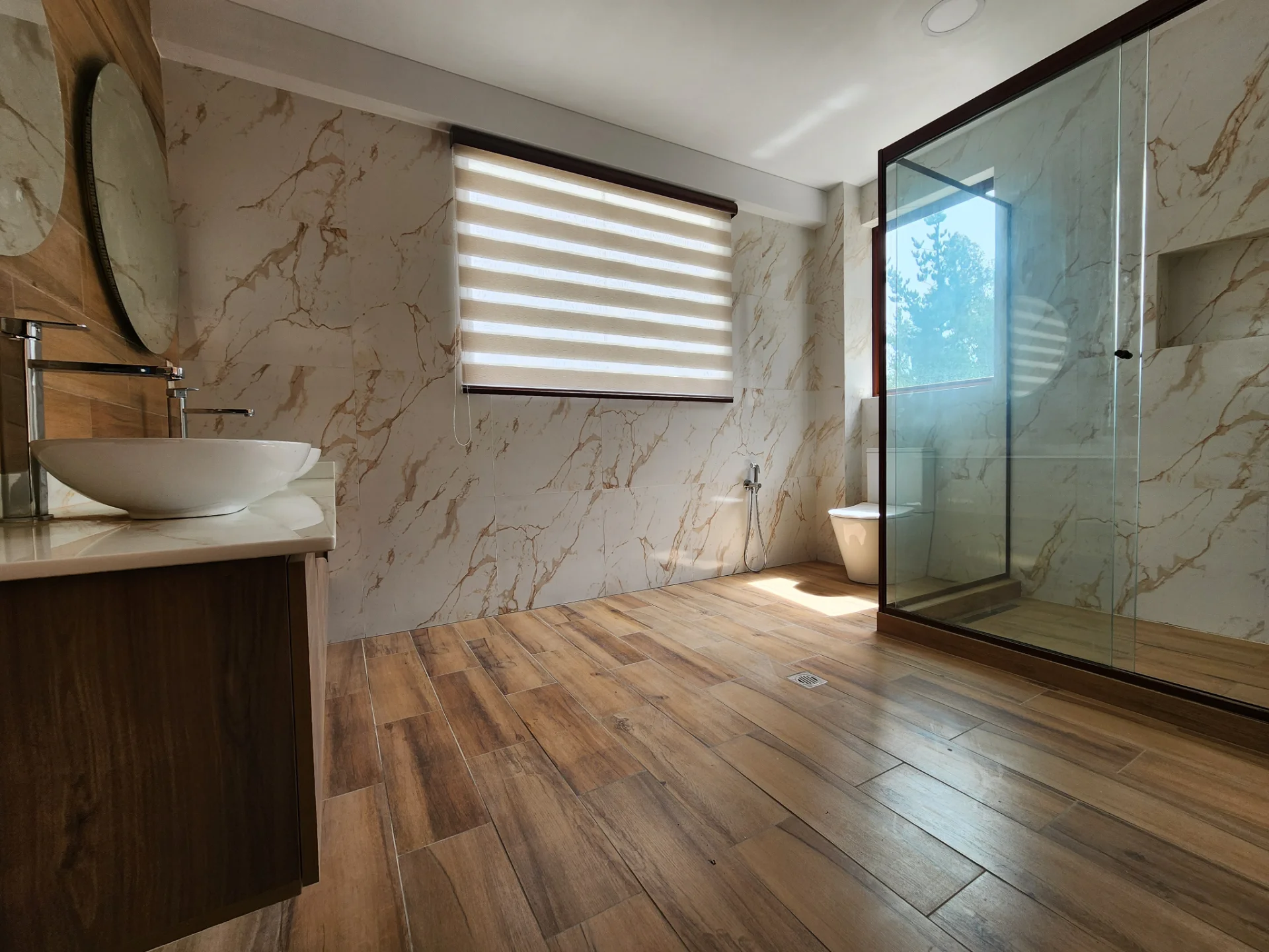 Exclusiva vivienda construida con materiales de primera calidad, pisos de madera entablonada en toda la casa y detalles que marcan la diferencia. Amplios ventanales que aportan excelente iluminación natural y una arquitectura moderna pensada para el confort y la funcionalidad.