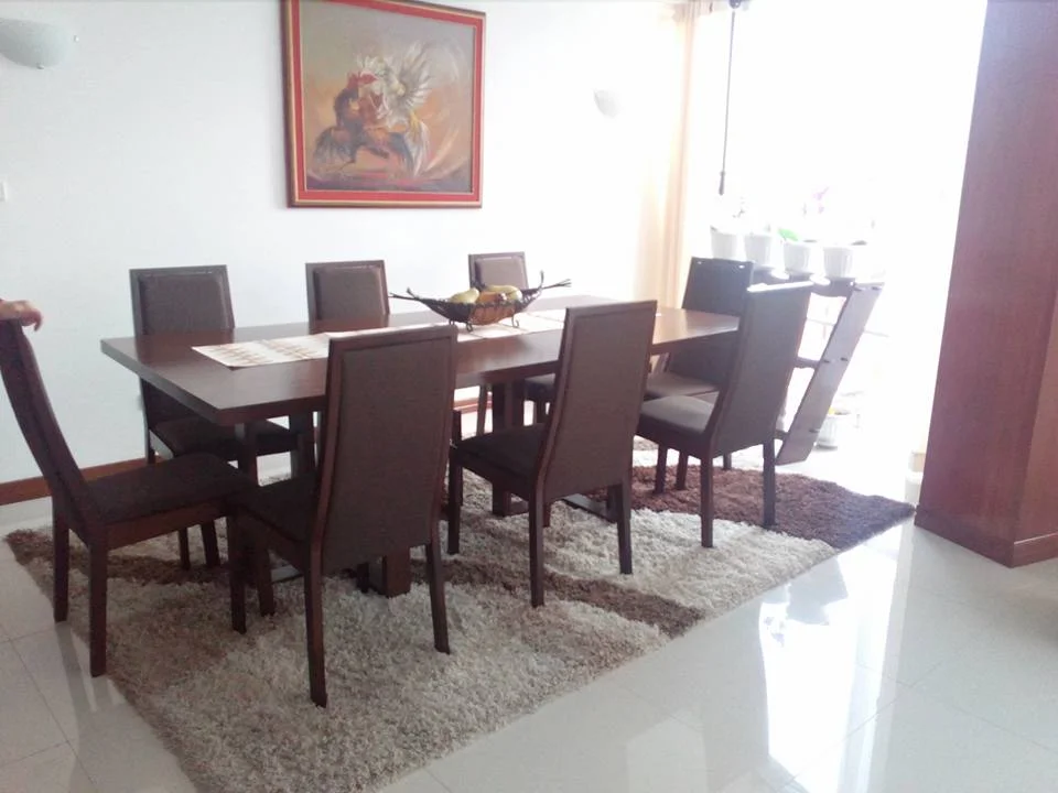 Consta de: living, comedor, cocina con comedor de diario, estar familiar, tres dormitorios (uno en suite), cuatro baños, garaje y baulera