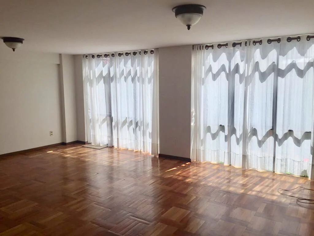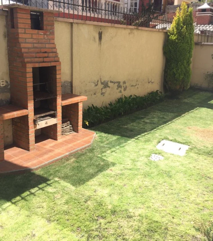 Departamento en alquiler a media cuadra del Hipermaxi, 3 dormitorios, soleado, dependencias de empleada, 2 garajes, baulera, jardín propio y parrillero.
