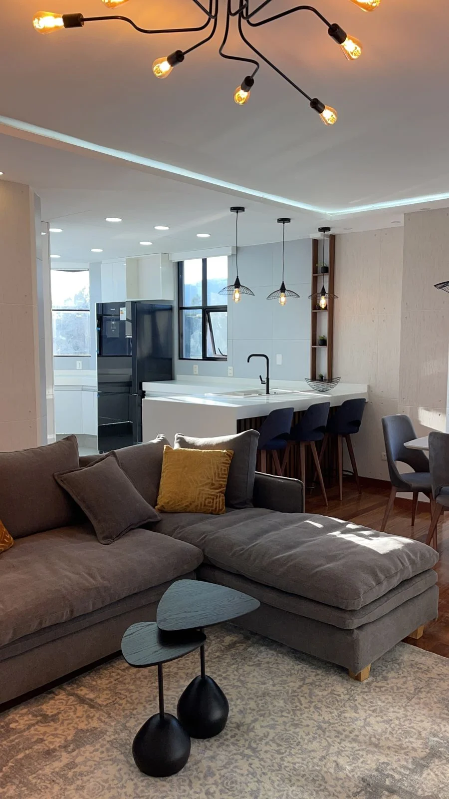 Sala de estar comedor con cocina integrada