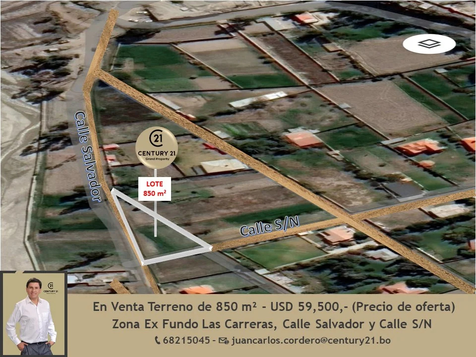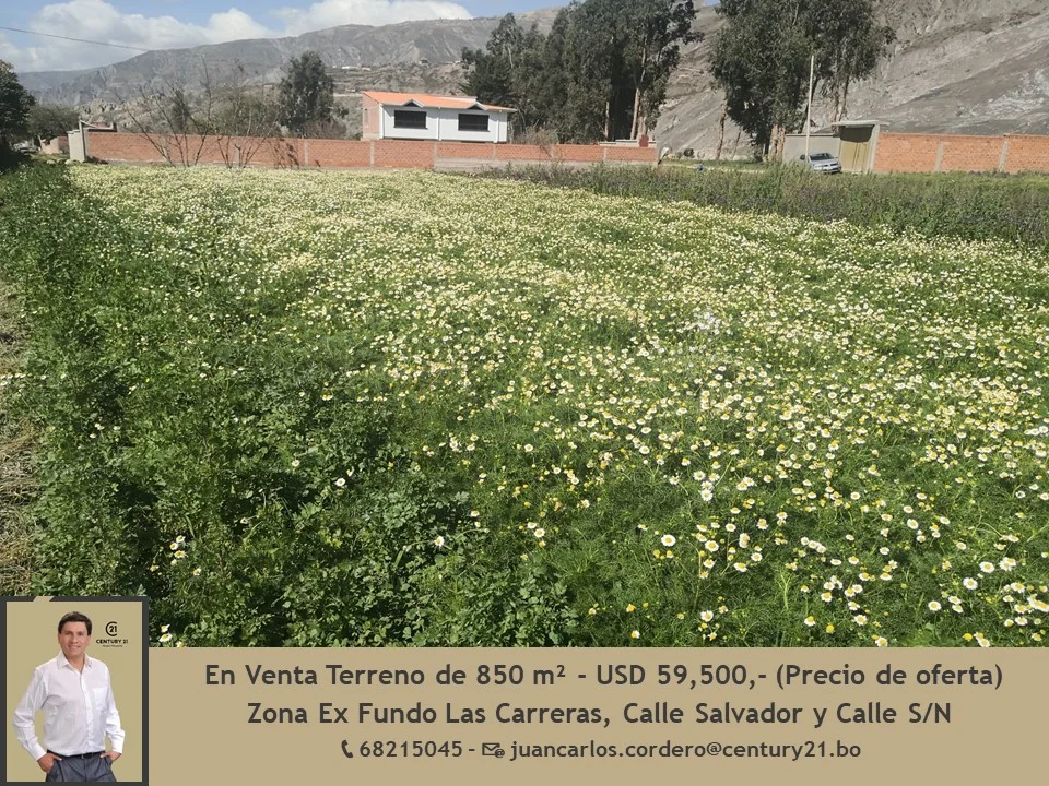 Hermoso terreno en venta con una superficie de 850m2, Muy bien ubicado; una gran oportunidad en sector de alta plusvalía. Precio venta $us 59.500.