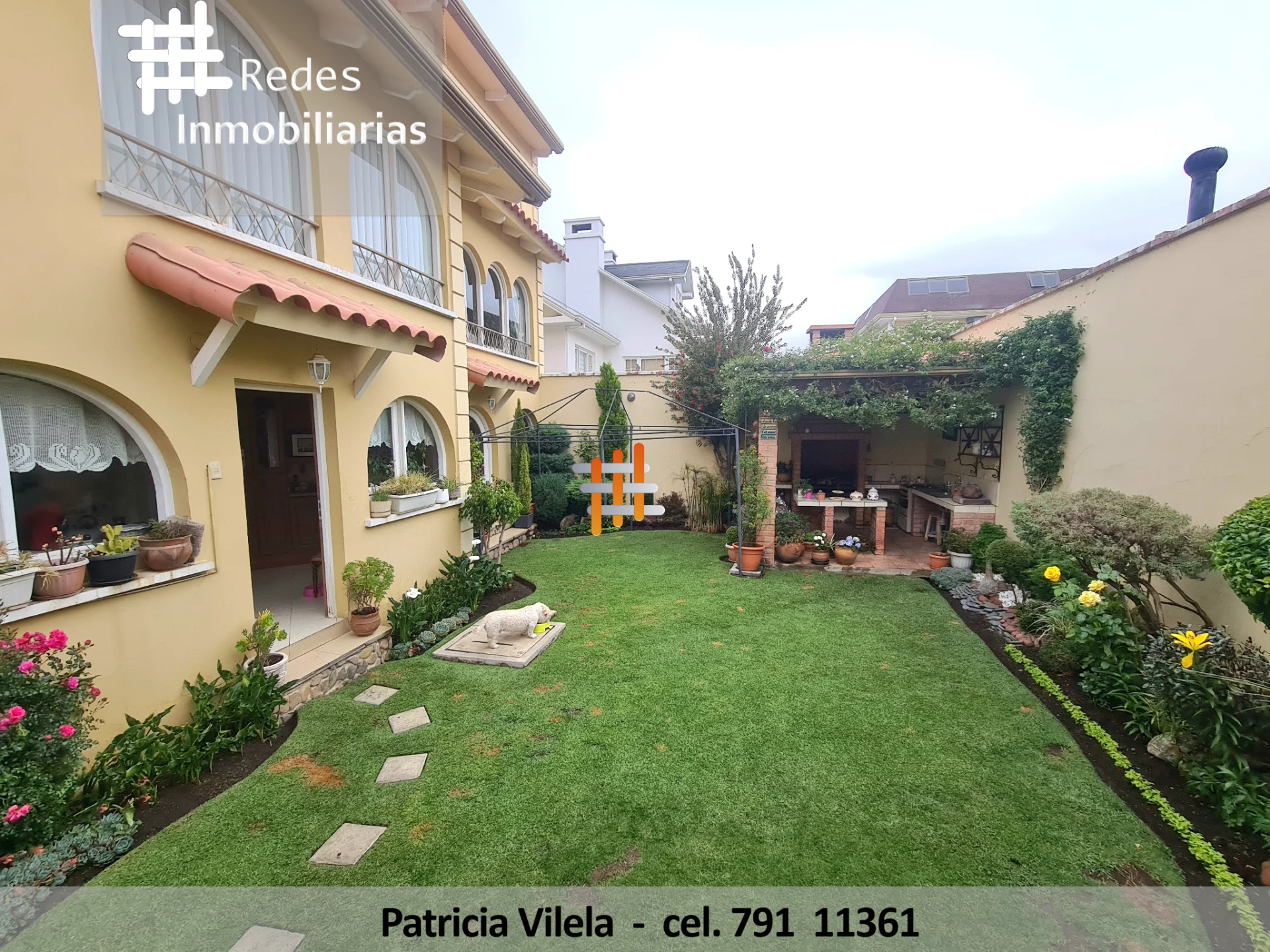 Diseñado con paisajismo. El jardín posterior cuenta con parrillero techado y una pequeña sala de juegos.