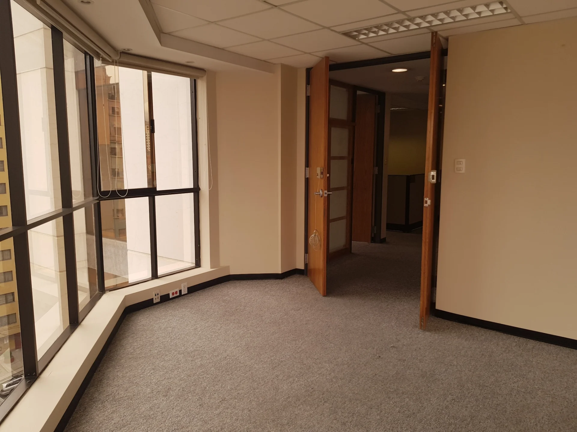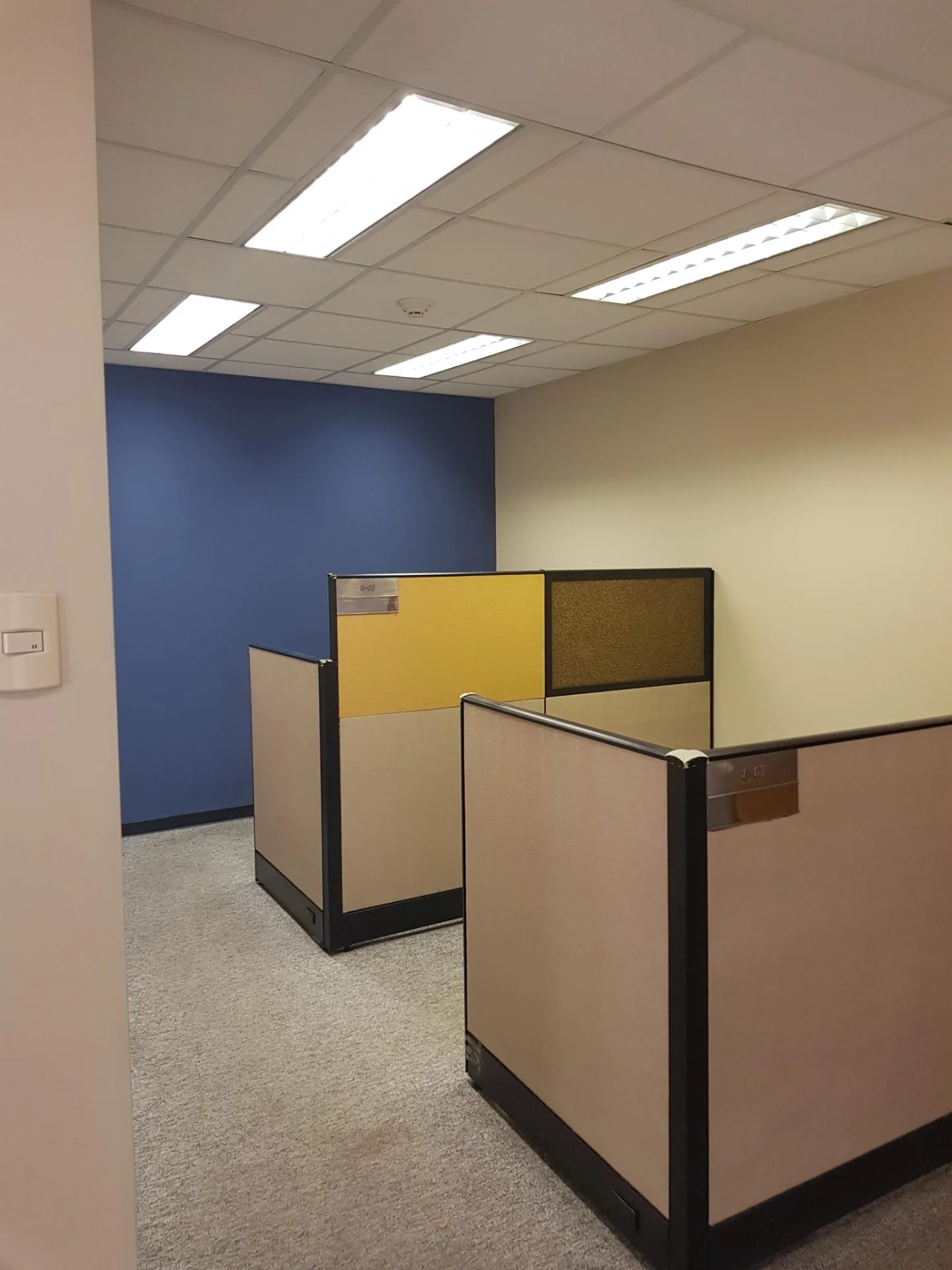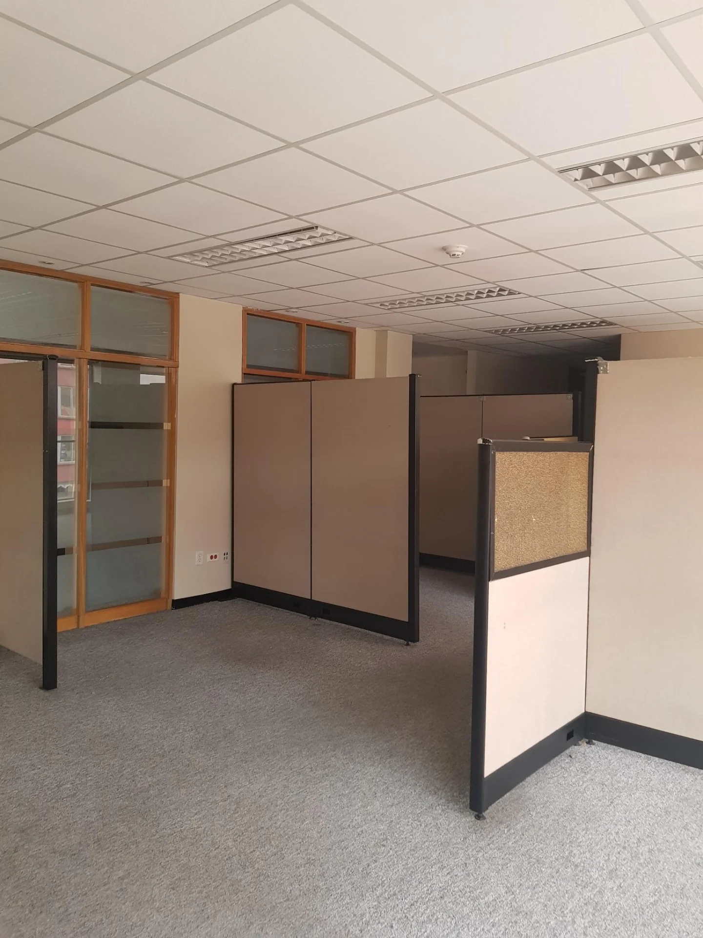 Lindas Oficinas Alfombradas en uma parte tiene cubículos de division, con baños, cocineta, garaje.