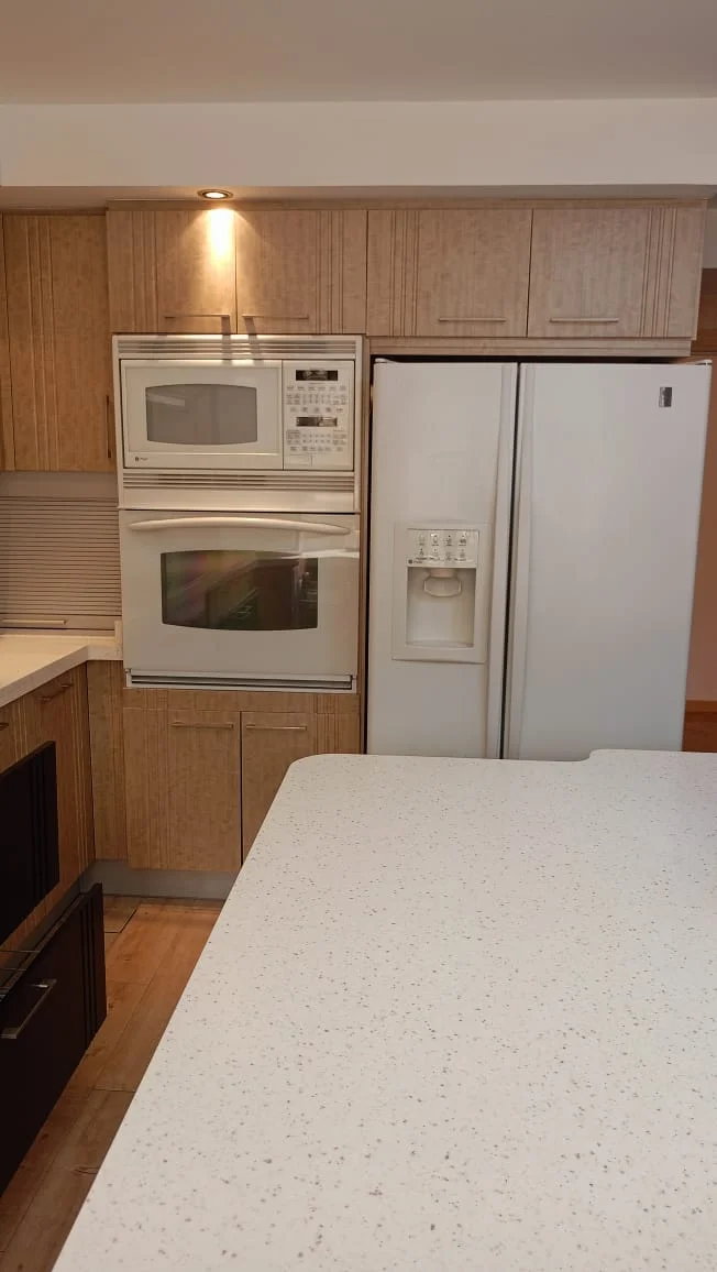 1 cocina amplia completamente equipada con isla para 10 personas con cajonería alta y baja.