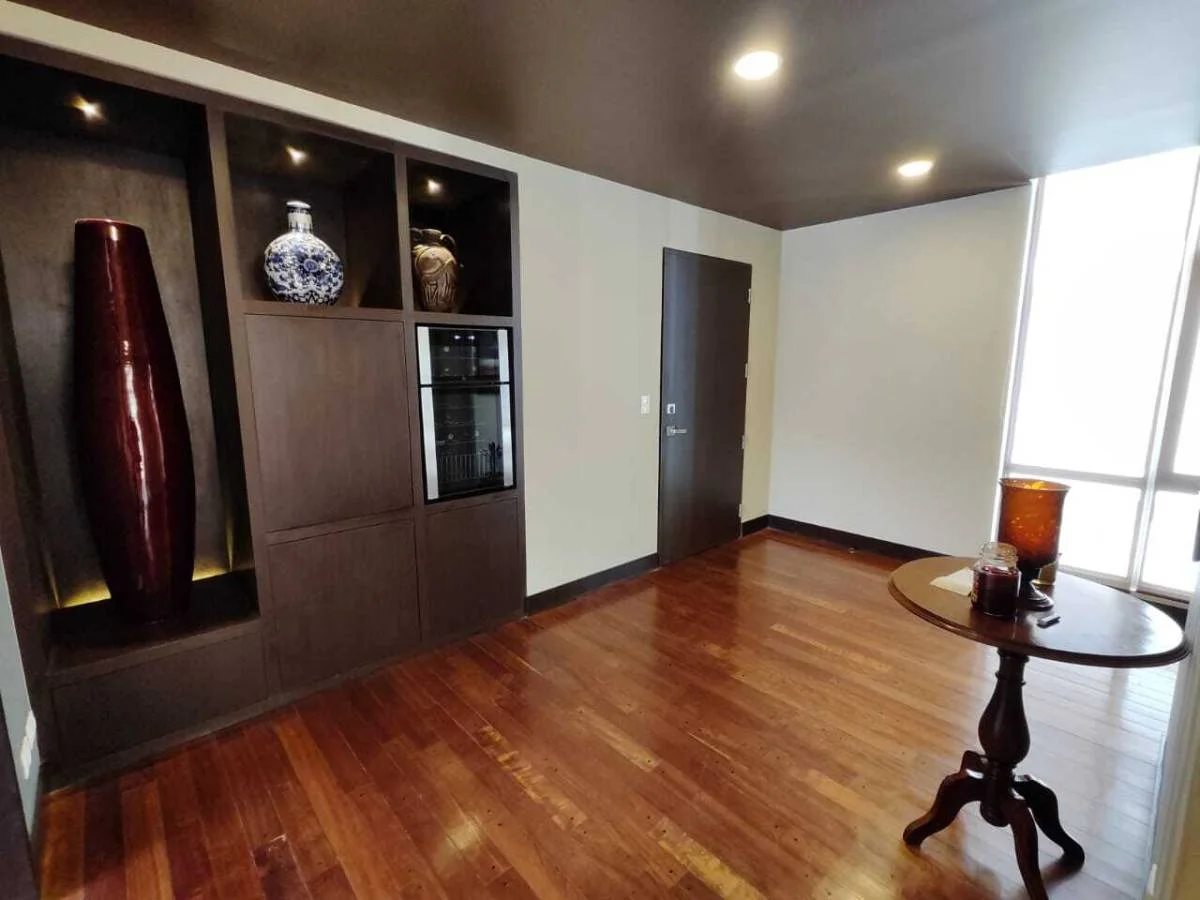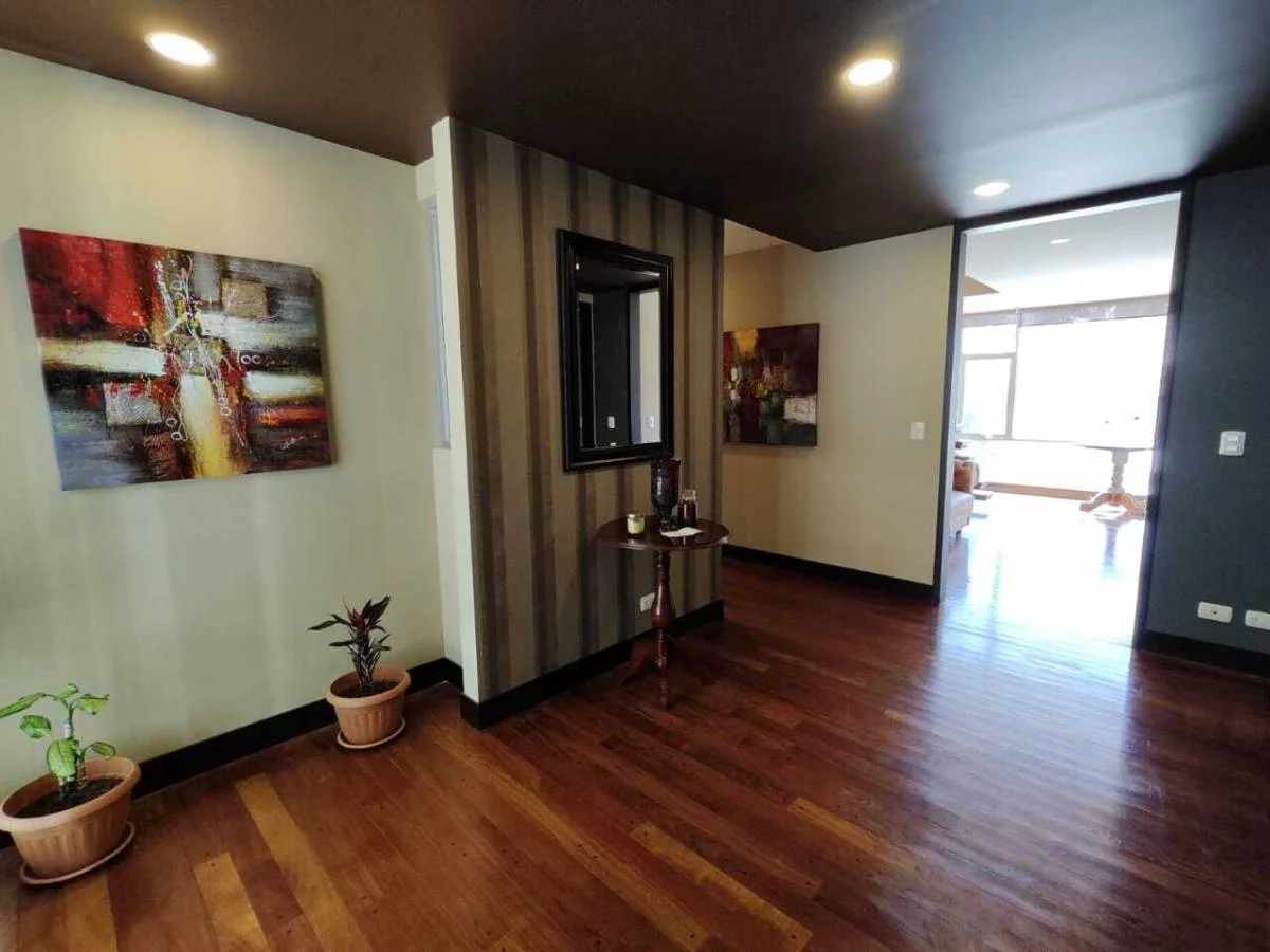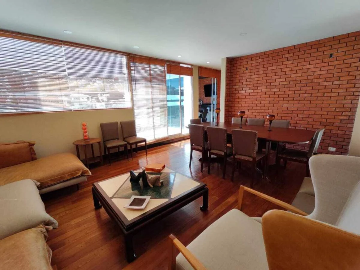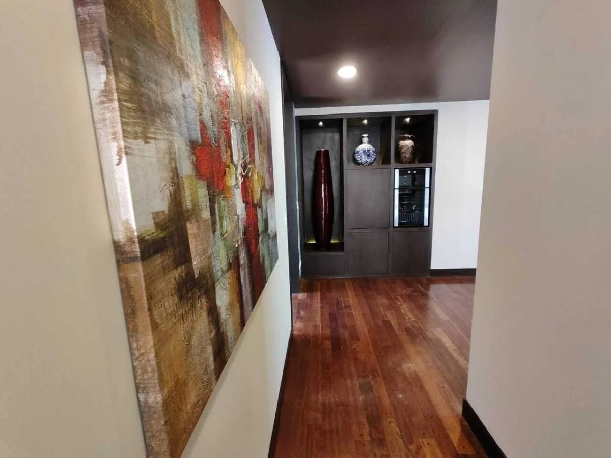 Piso entablonado de madera, empapelados europeos, 3 dormitorios en suit, parrillero con techo de vidrio, cava de vinos , 2 parqueos y 1 baulera.