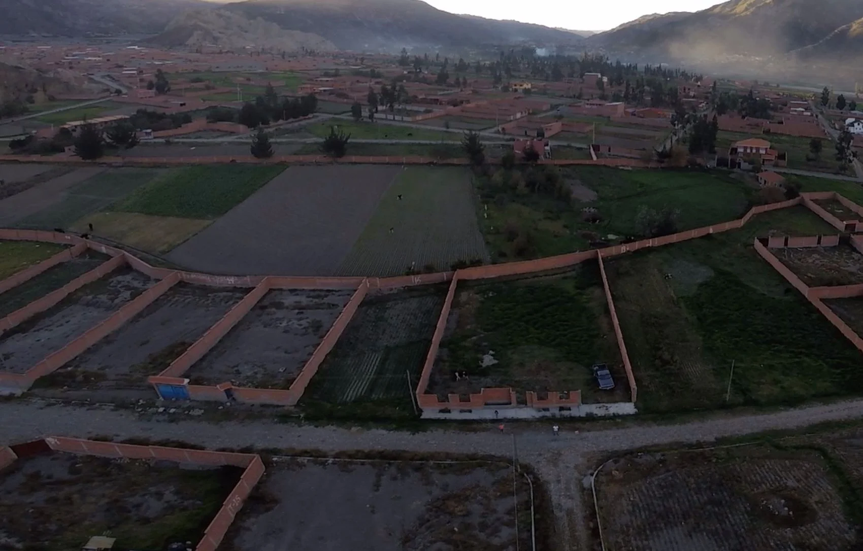 con servicios, plano, lejos de ríos y cerros, excelente vista. altura similar a Cochabamba