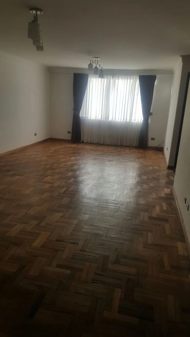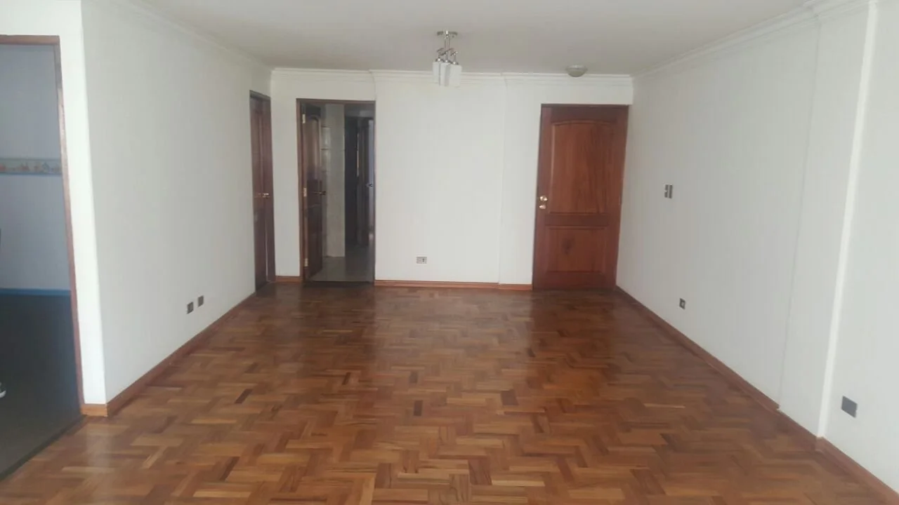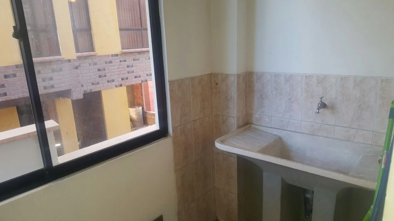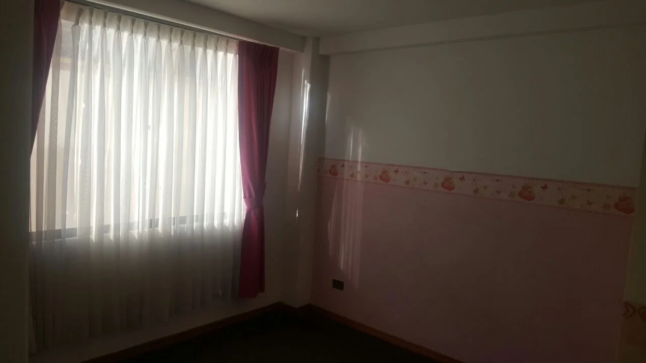 Departamento de tres dormitorios todos con roperos empotrados y alfombrados, uno en suite con baño privado y tina, cocina y baño con muebles, un pequeño cuarto de escritorio y lavandería, incluye cortinas y lámparas. No cuenta con parqueo ni baulera. Se acepta financiamiento bancario.