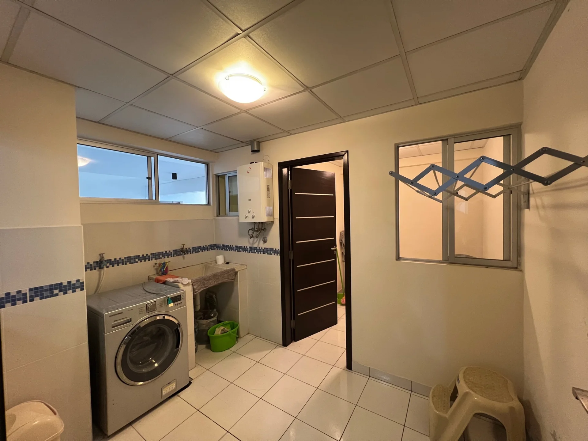 - Dependencia de empleada con baño, área de lavandería con lavadora y secadora Daewoo 10 Kg, intercomunicador. Cuenta con gas domiciliario y calefón a gas.