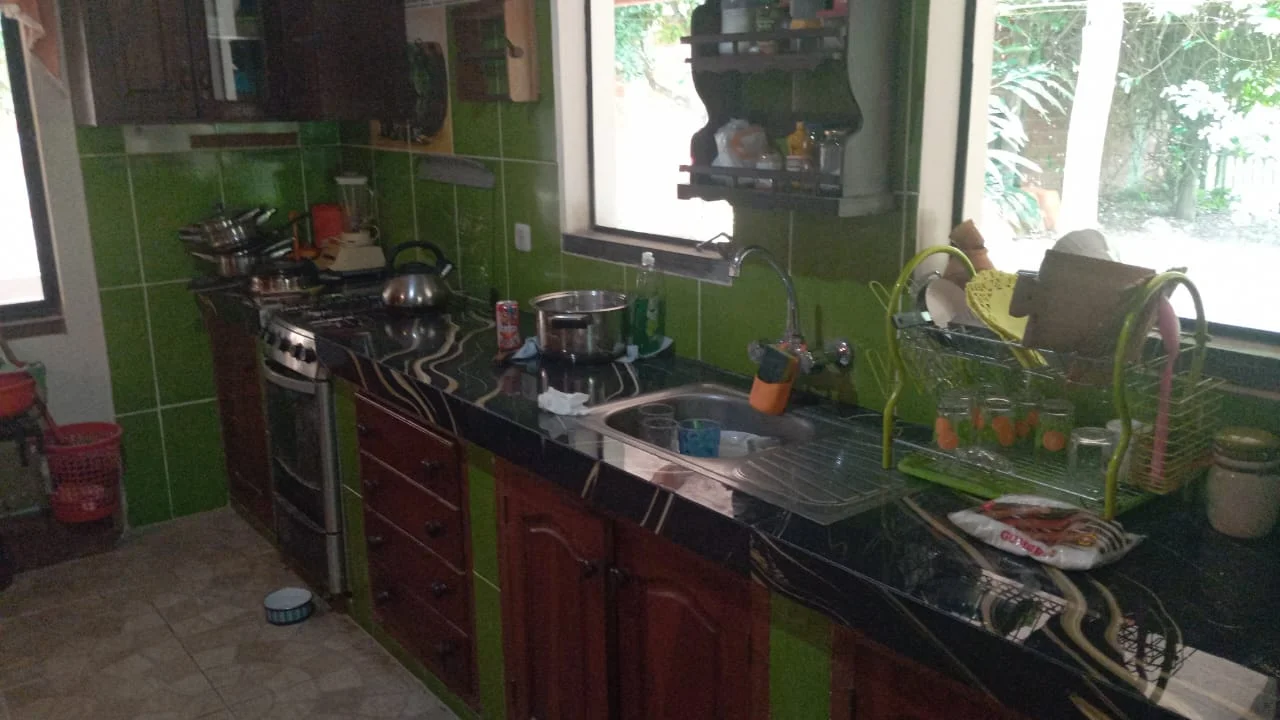 Cerca de Porongo, en una linda urbanizacion, alquilo una bonita casa amoblada de 120m2 con 2 dormitorios, uno en suite, bano de visita, living comedor, mezanine, cocina americana equipada, galeria amplia, jardin grande de 900m2 con frutales, parqueo.