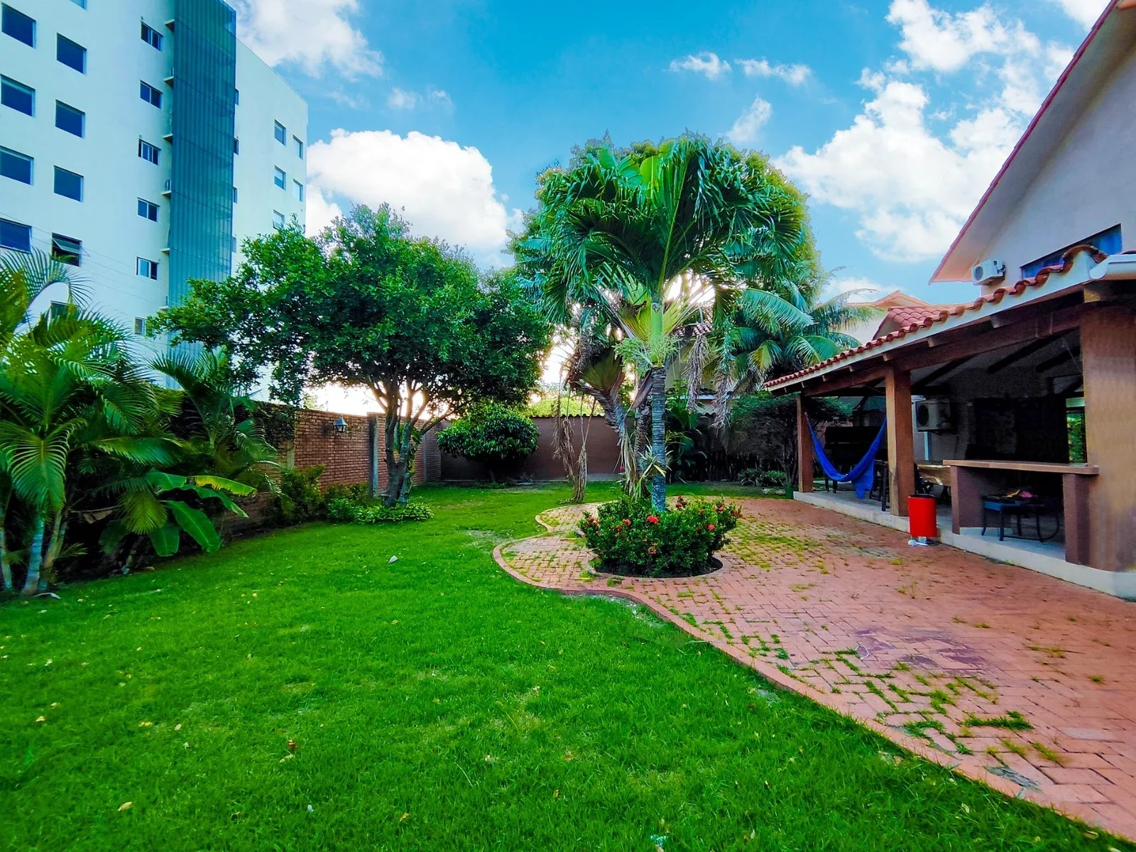 Amplio jardin con árboles frutales