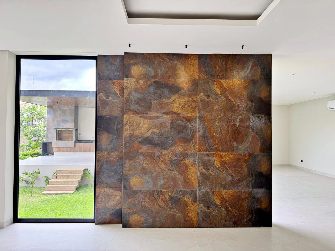 Desde el ingreso, un elegante recibidor conecta con espacios amplios y bien distribuidos. La sala principal cuenta con vista directa al jardín, churrasquera y piscina, generando un ambiente ideal para compartir y recibir invitados.