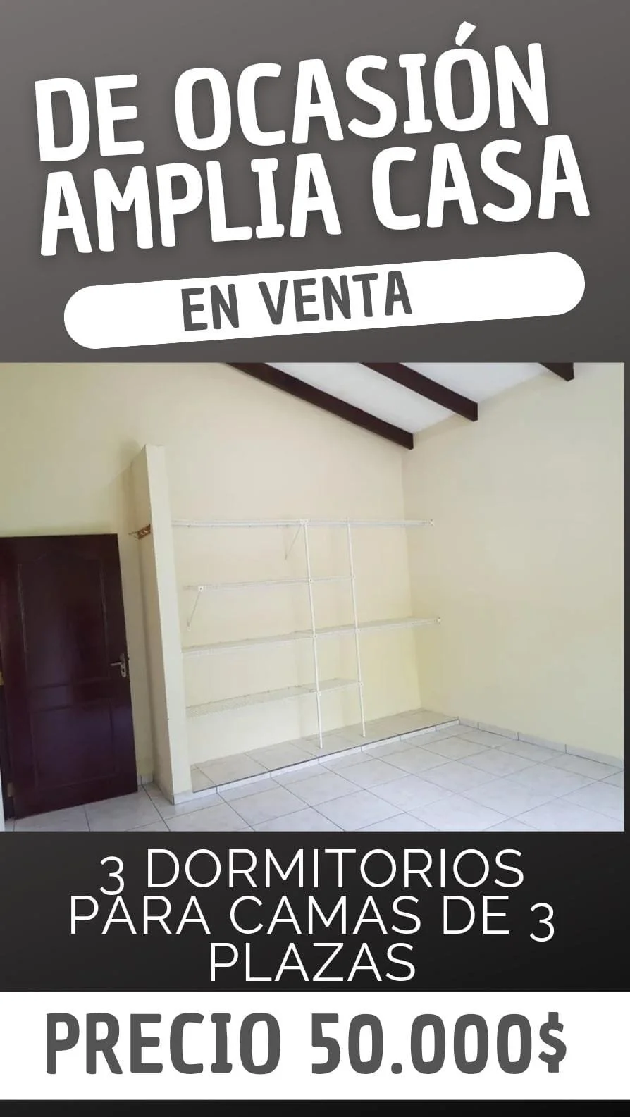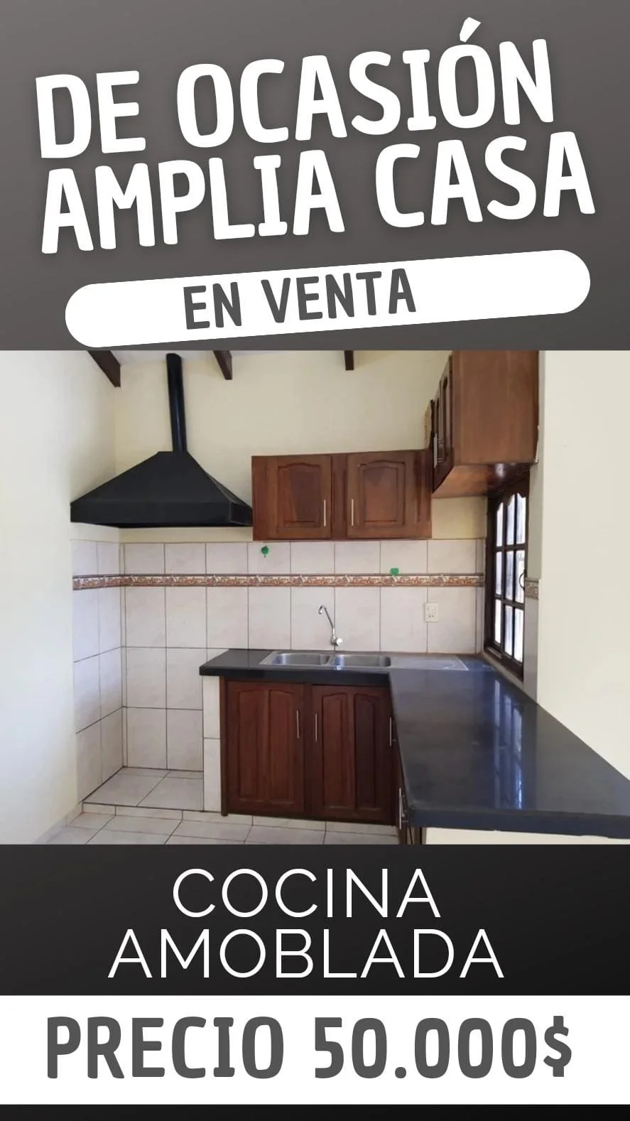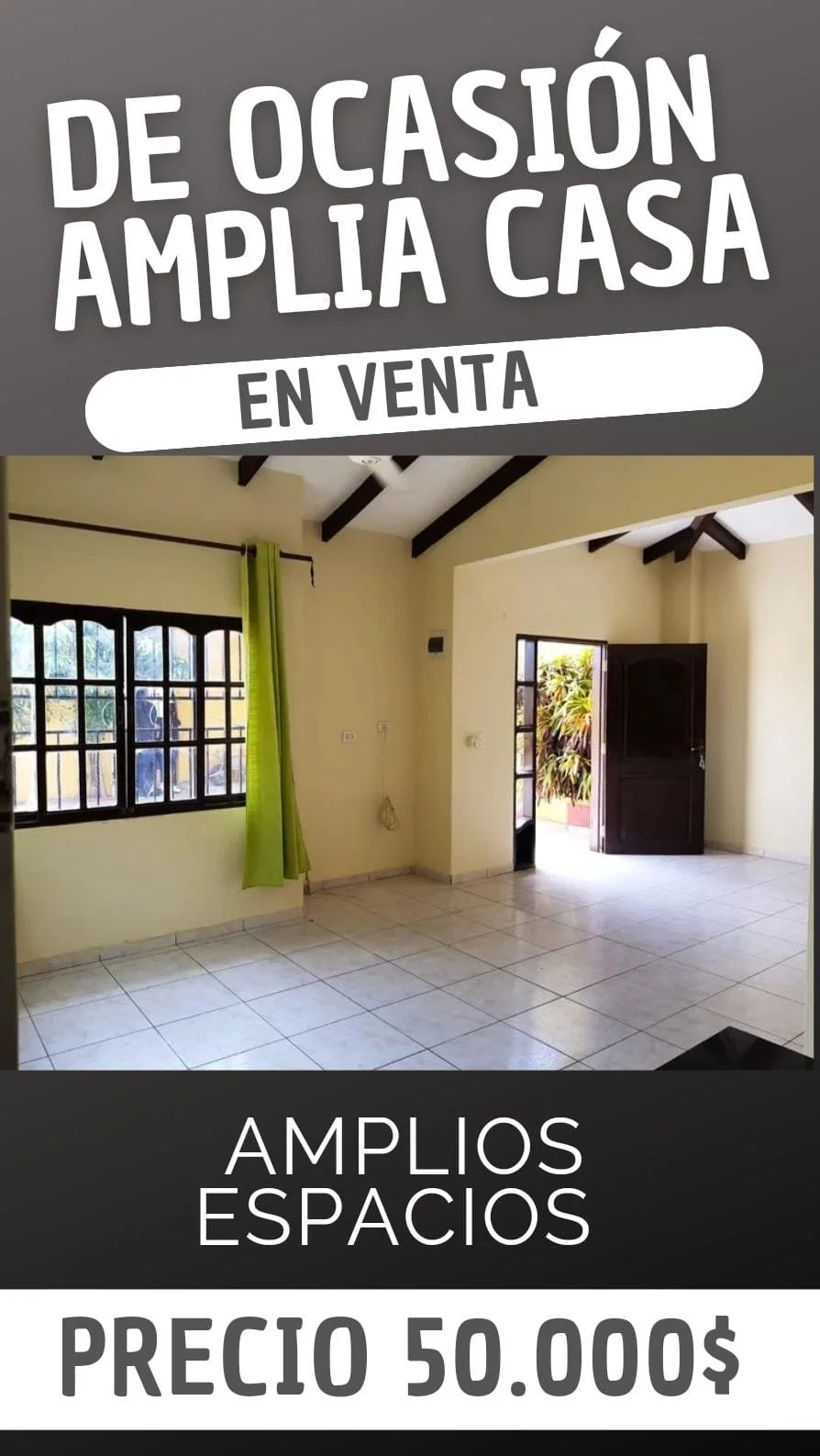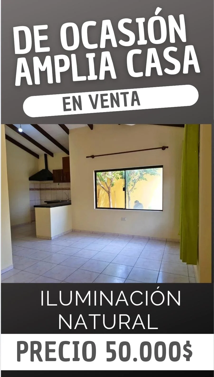 *LINDA CASA EN VENTA CON JARDIN + DEPARTAMENTO DE 2 DORMITORIOS* Superficie Terreno: 300 m²Superficie Construida: 150m² ✓3 DORMITORIOS✓1 BAÑO✓SALA COMEDOR✓COCINA ESTILO AMERICANA CON CAJONERIA COMPLETA y EXTRACTOR, AMPLIO PATIO DELANTERO CON GALERIA (PARA CHURRASQUERA, HAMACA,ETC) GARAJE PARA 2 VEHÍCULO, AMPLIO JARDIN TRASERO CON PLANTAS FRUTALES MAS DEPARTAMENTO DE 2 DORMITORIOS CON BAÑO PRIVADO AL FONDO CON LAVANDERIA Papeles en ordenENTREGA INMEDIATA UBICACIÓN :JUAN PABLO II próximo a satélite norte Líneas de transporte a la puerta. PRECIO: 50.000$OFERTABLEMAS información AL 75607112