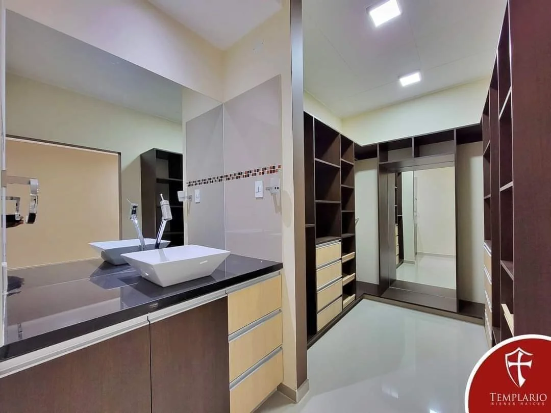 ☑️ Equipamiento: Portón automático, muebles superiores e inferiores de cocina, cocina encimera, campana extractora, roperos empotrados y vestidor, mueble/espejo/box de baños, gas domiciliario, cargador de smartphone, 112 pantallas Led