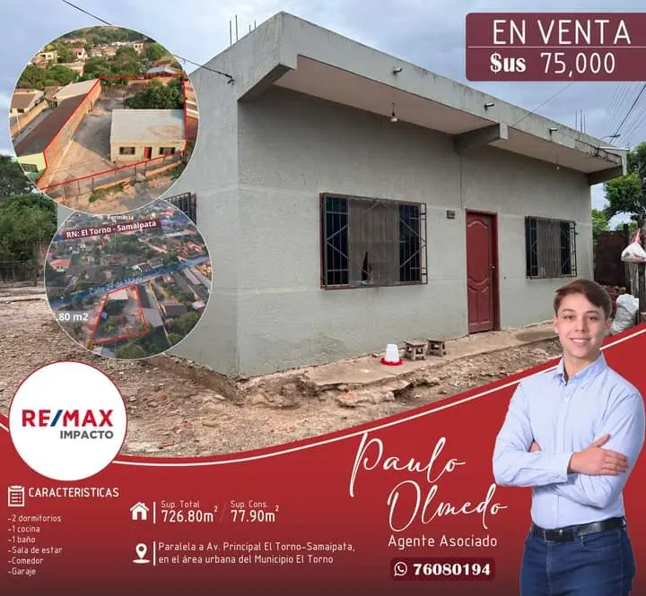 CASA EN VENTA EN EL MUNICIPIO EL TORNO EN SANTA CRUZ DE LA SIERRA