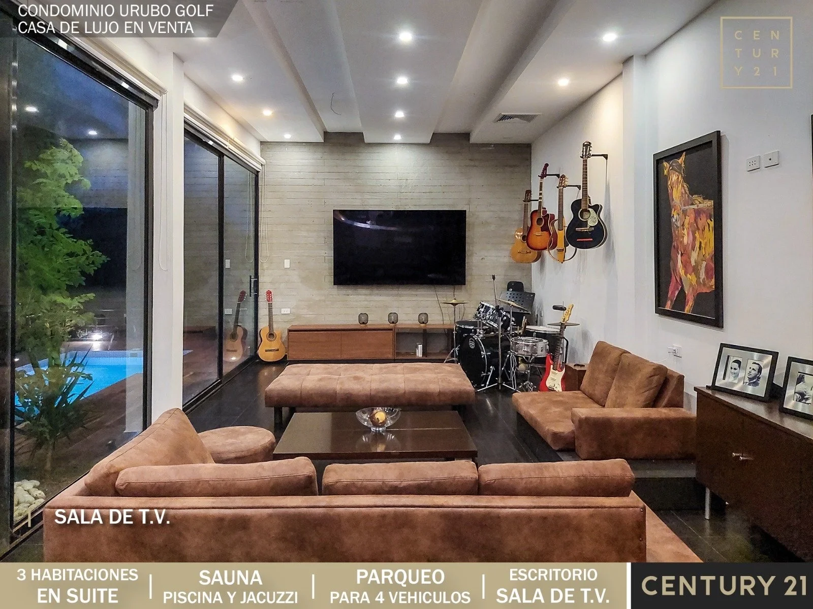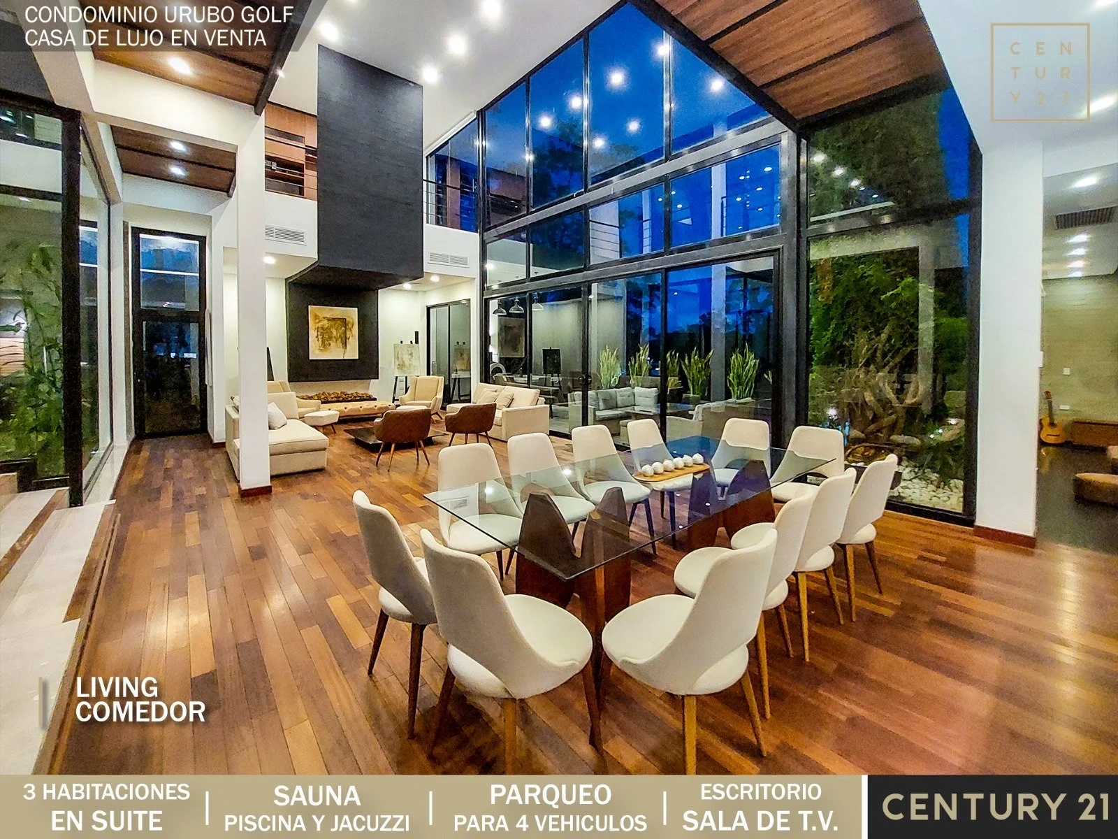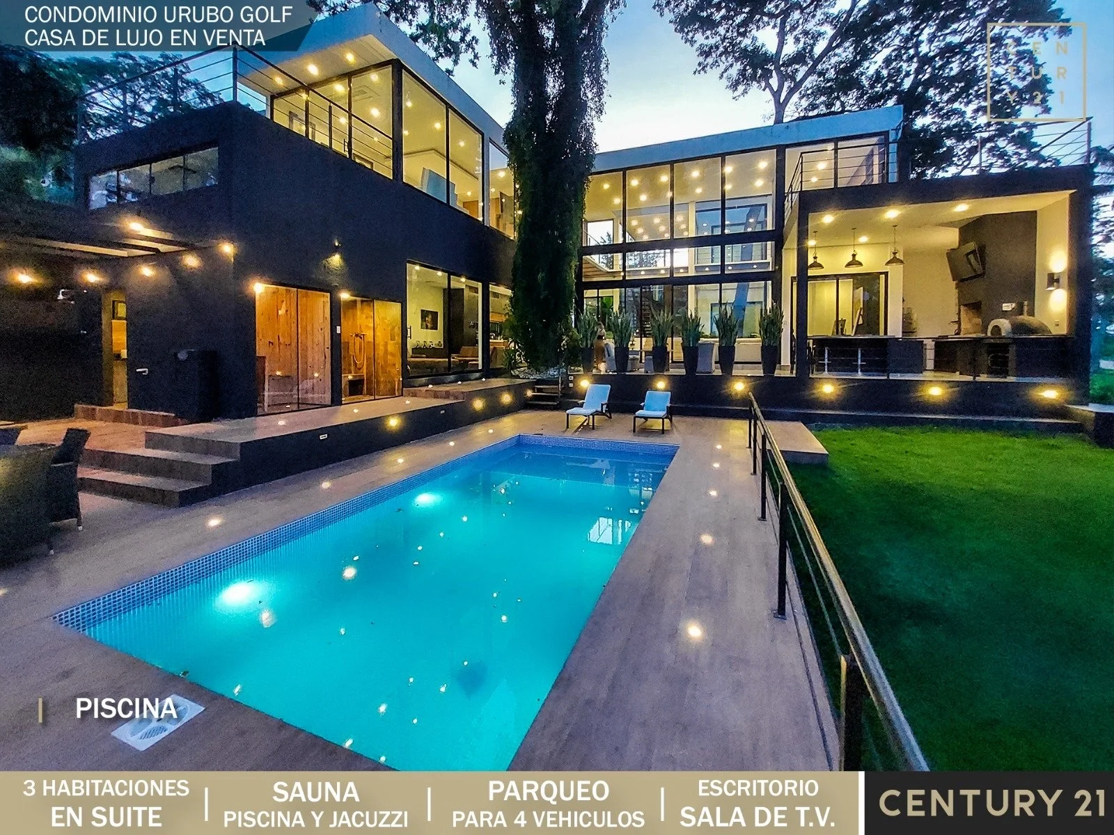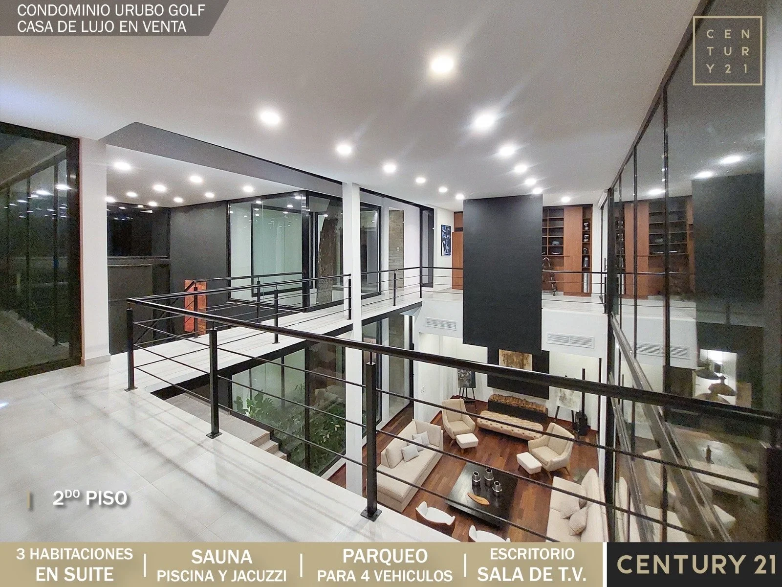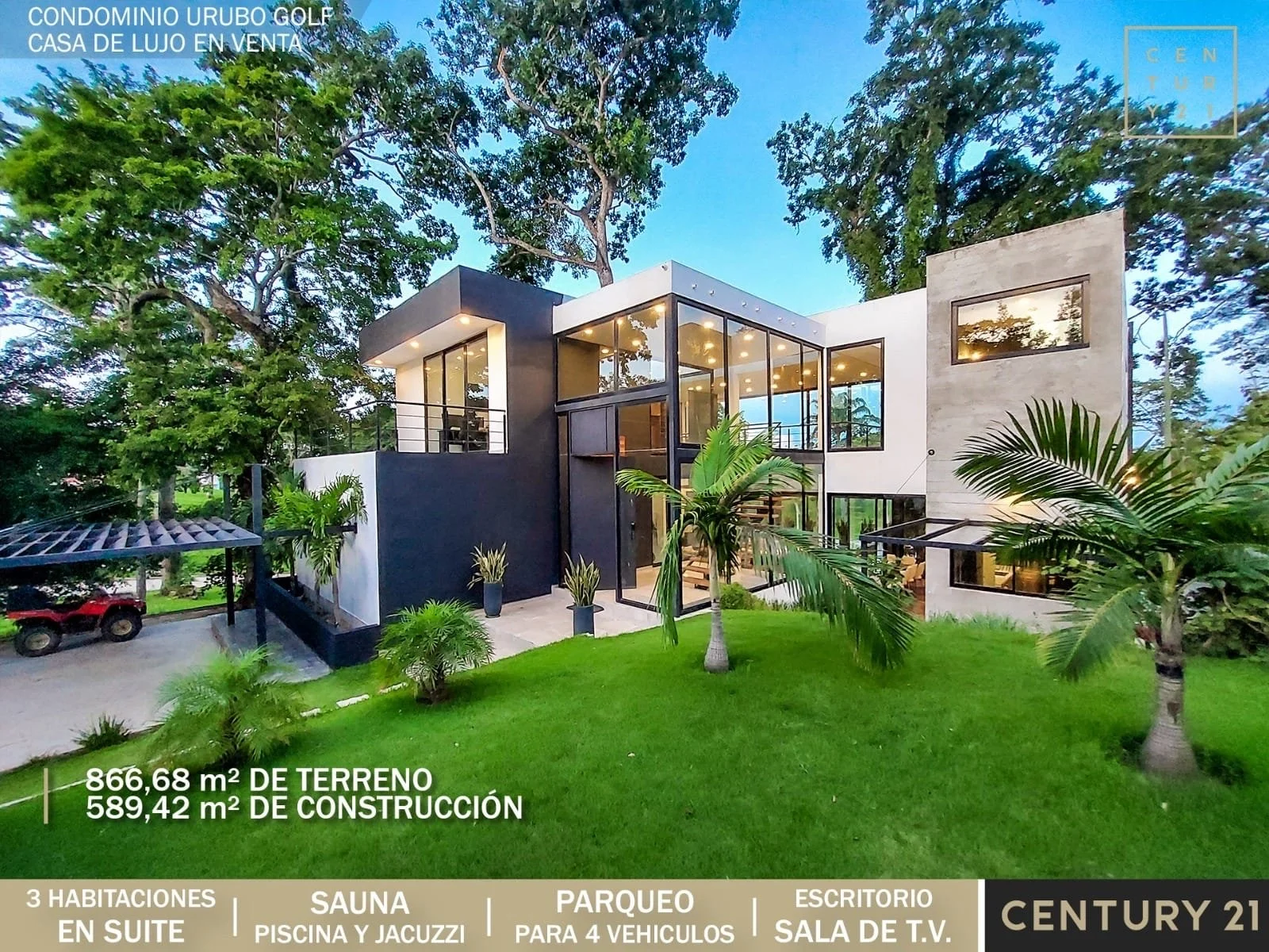 Casa de lujo en Venta ????Condominio Urubó Golf Sup. Terreno 866.68 m2 Sup. Construida 589,42 m2✔️Planta BajaLiving comedorSala de tv Cocina abiertaCocineta con despensaJardín internoUna suite Baño de visitasGalería con churrasquera Piscina con deck y jacuzziSauna a vapor y seco Baño exterior Área de servicio completa e independienteParqueo para 4 vehículos (2 bajo techo)✔️ Planta Alta 2 máster suite con balcón 1 sala de TV o escritorio con balcón Precio: 595.000 $us???? Info y Visitas: 60000391