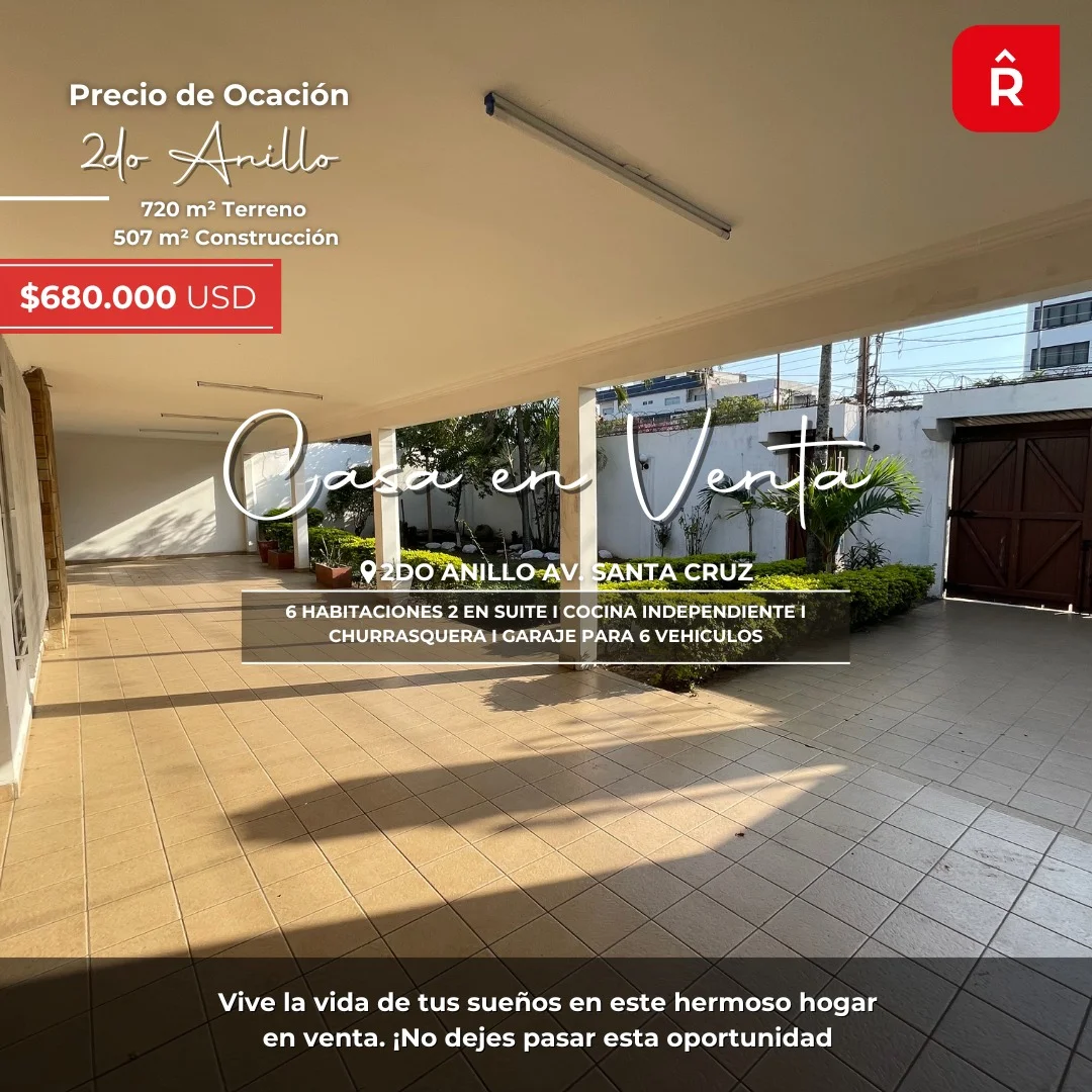 Descubre esta espectacular casa en una ubicación estratégica, perfecta para tu hogar o negocio. Con salida a 2 calles (Av. Santa Cruz y Calle Saturnino Saucedo), esta propiedad ofrece comodidad y versatilidad en cada rincón.