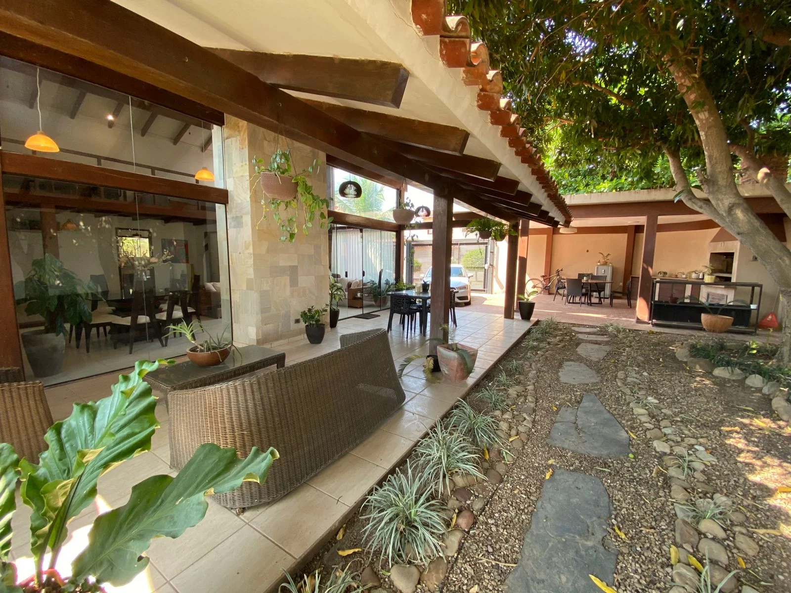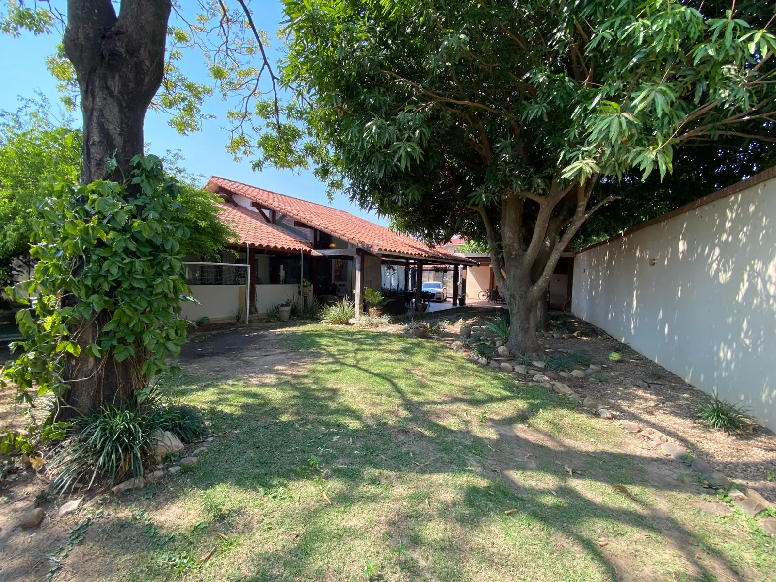 Hermoso jardín con árboles frutales de mango, achachairú y tamarindo