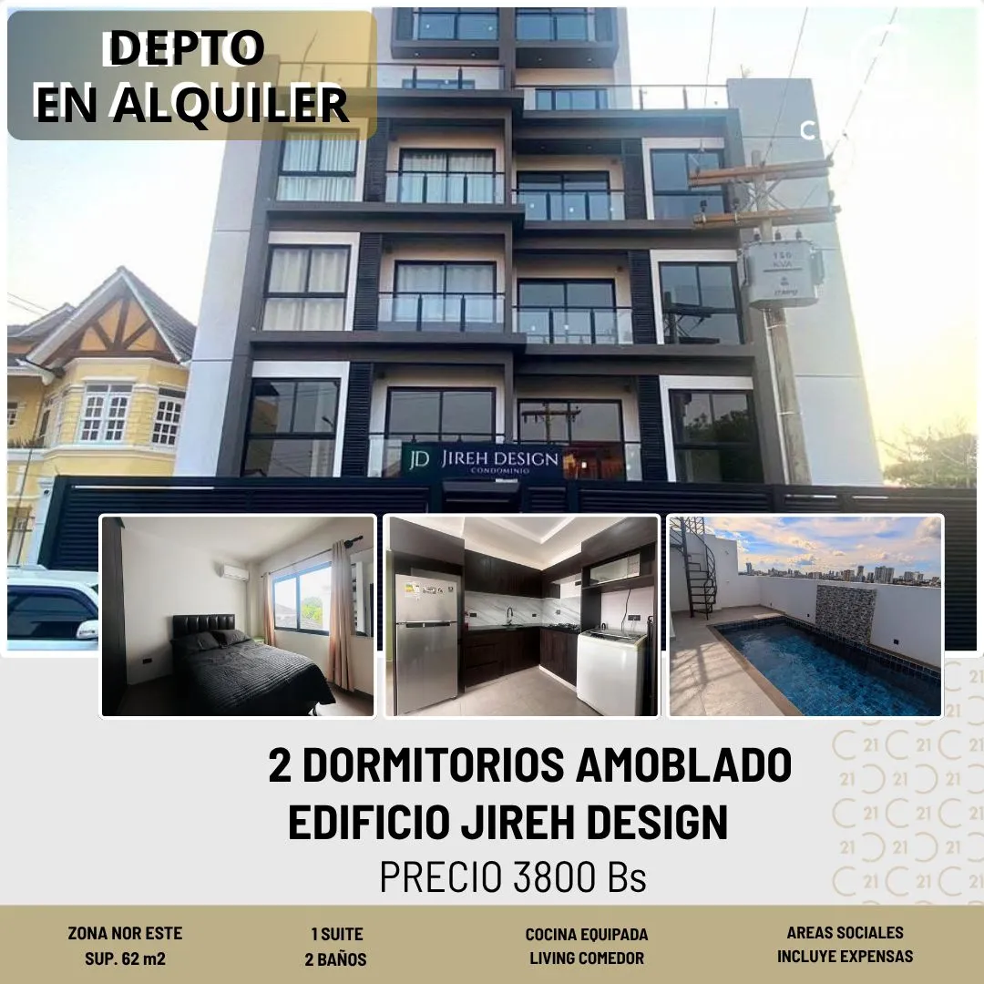 Departamento de 2 Dormitorios amoblado y equipado en Alquiler.