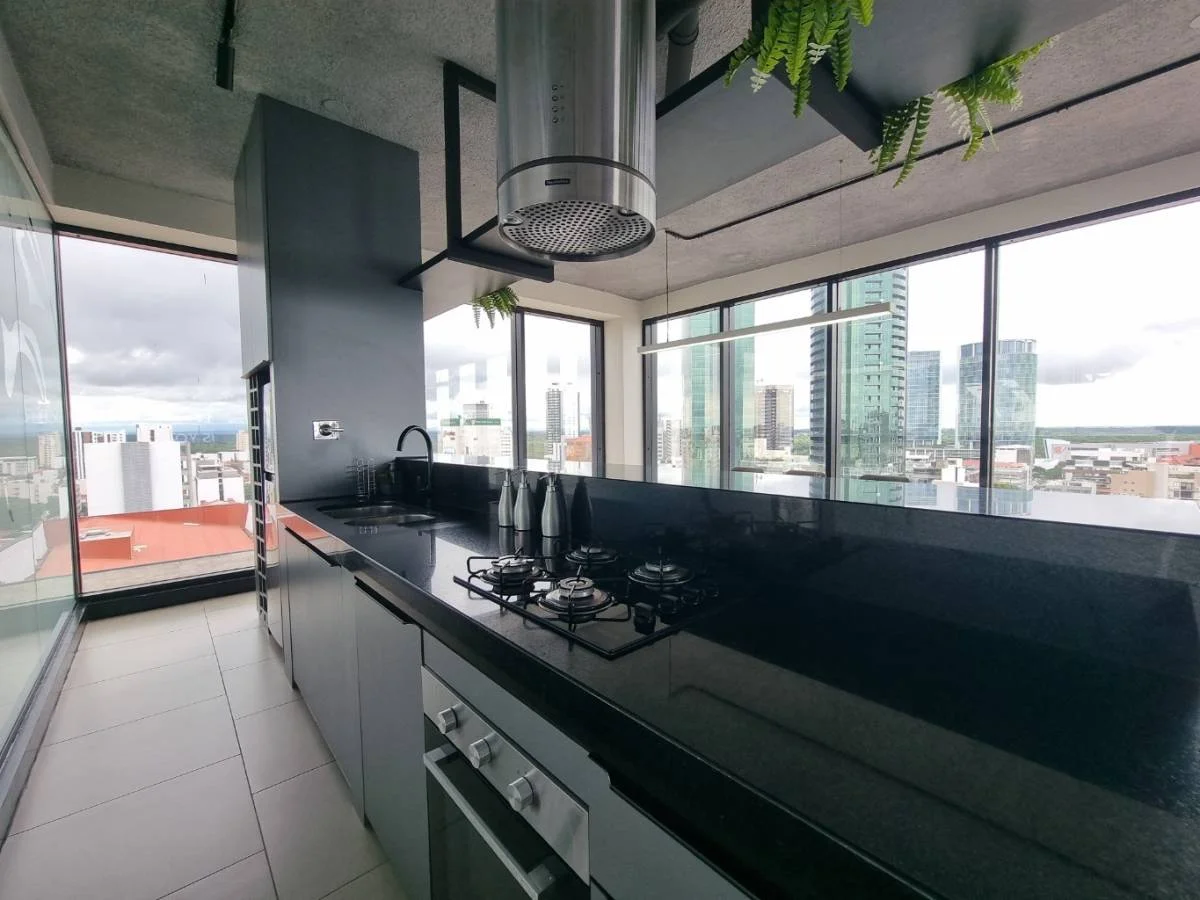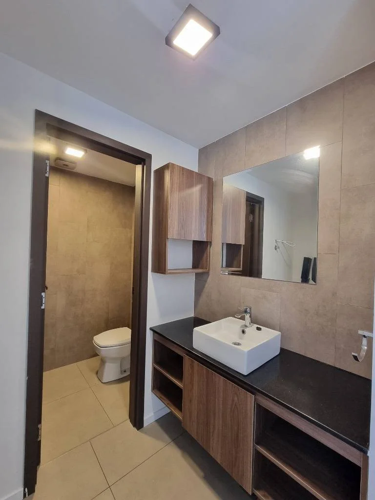 Completamente equipado con Aires Acondicionados inverter, cortinas en todos los ambientes, roperos empotrados con divisiones y puertas de melamina, muebles altos y bajos en cocina, mueble debajo de los baños, y espejos, Todas las conexiones de luz e interruptores son smart controlados por alexa.