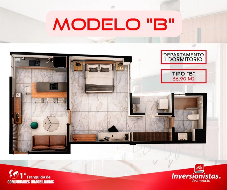 Departamento de lujo de 1 dormitorio en venta