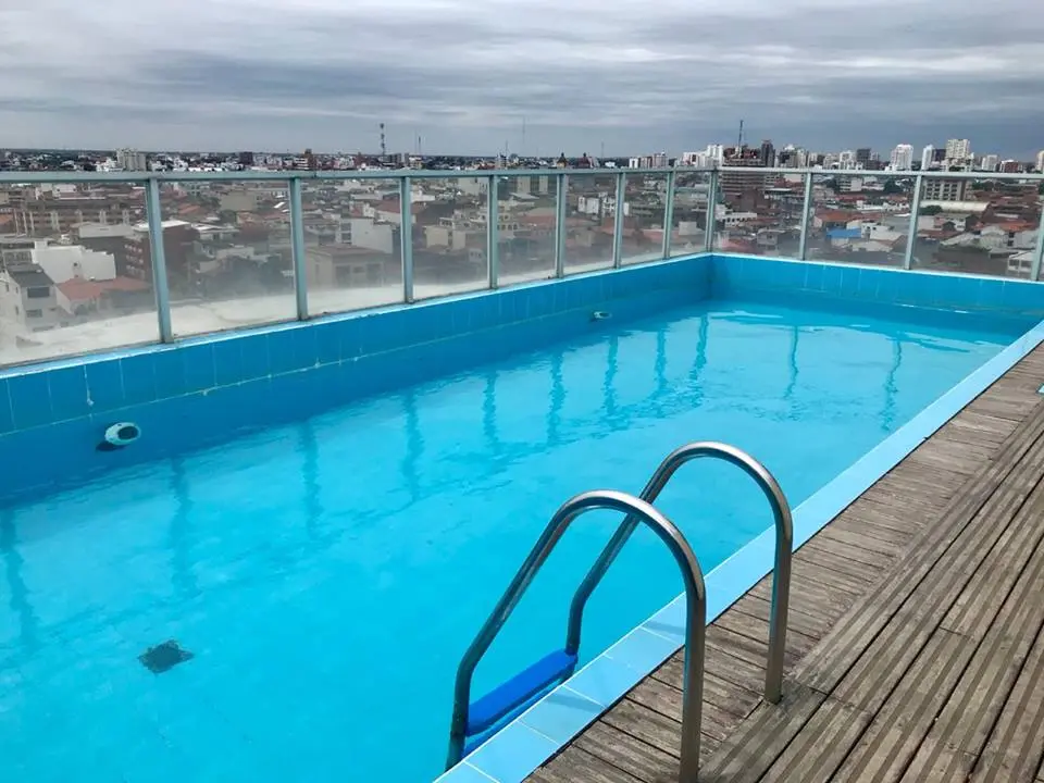 Departamento de un dormitorio con vestidor, espacio para lavadora y tendedero de ropa, living comedor, cocina amoblada, calefón, baño, aire acondicionado, gas domiciliar, sala de espera en recepción, dos ascensores, seguridad las 24 horas. Áreas sociales churrasquería, salón y piscina. Precio: 330$us/mes (trato con inmobiliaria) Ubicación: Calle Cuellar, a media cuadra de la Av. Cañoto. Expensa 343 bolivianos. Más información al 75314476 o entre al link de whatsapp: https://api.whatsapp.com/send?phone=59175314476&text=me+interesa+el+monoambiente