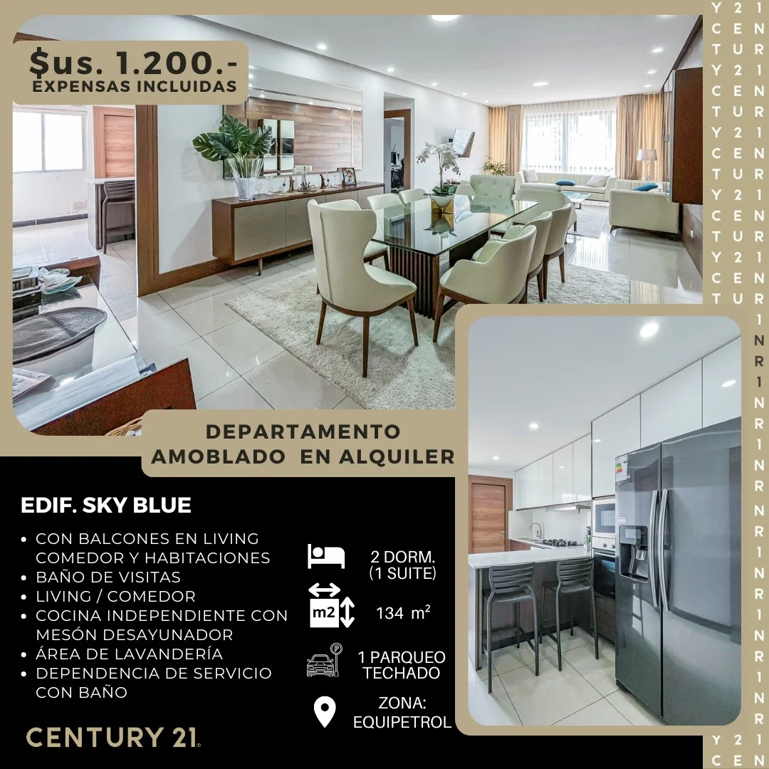 Precio Alquiler: $us. 1.200.- con expensas incluidas