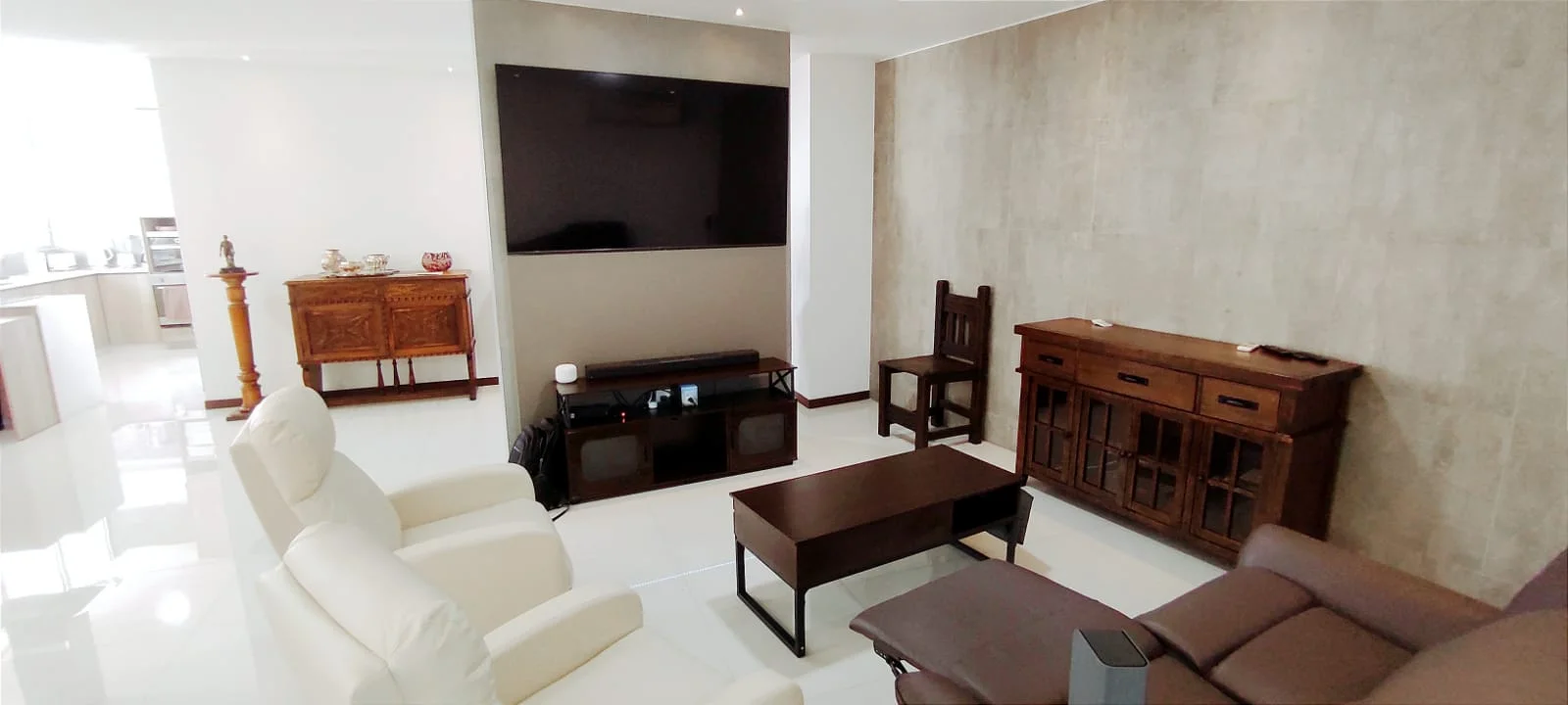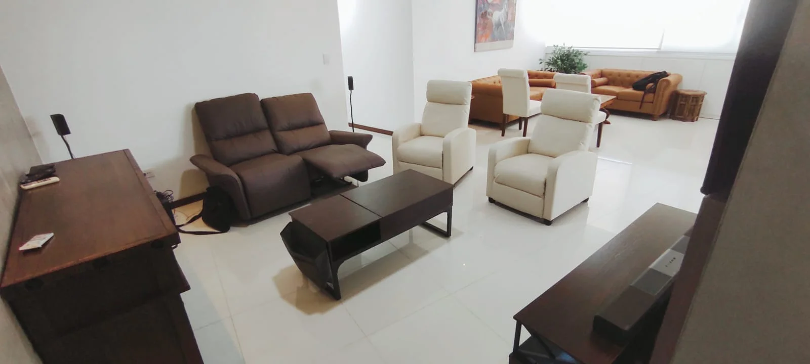 Acogedor family room con sistema de sonido BOSE y televisión.