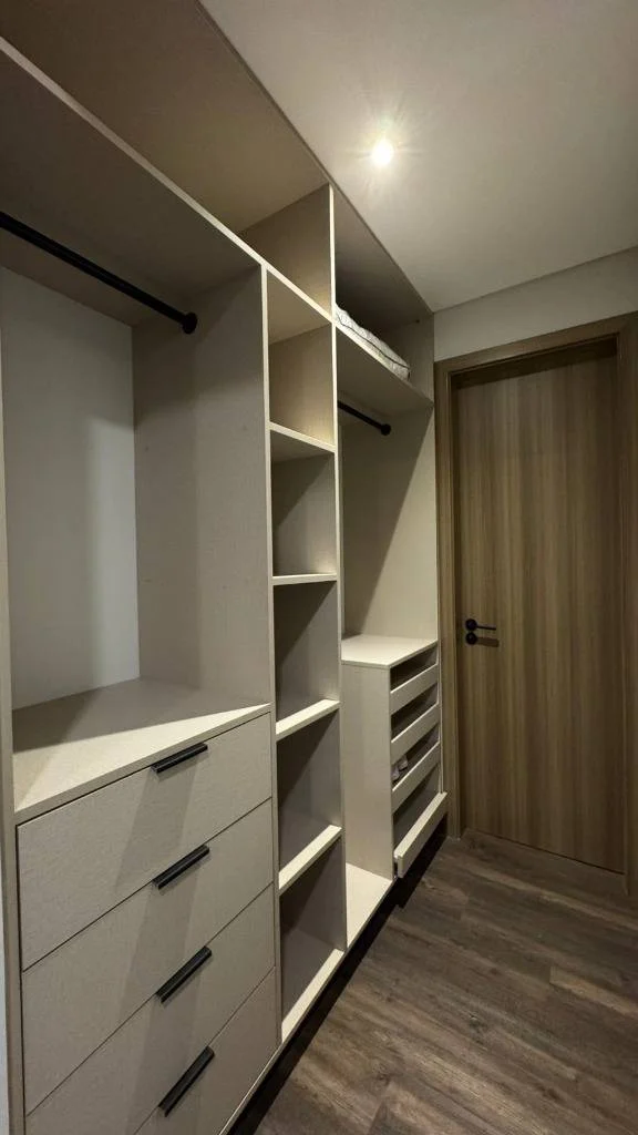 1 dormitorio en suite con vestidor, cortinas y ac