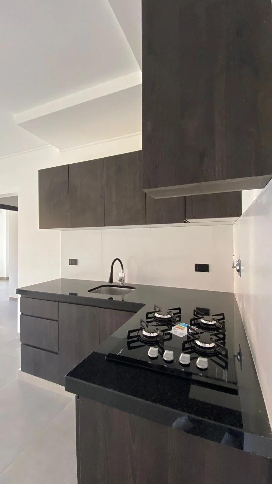 Cocina encimera con mesón de mármol, con cajonería Alta y Baja