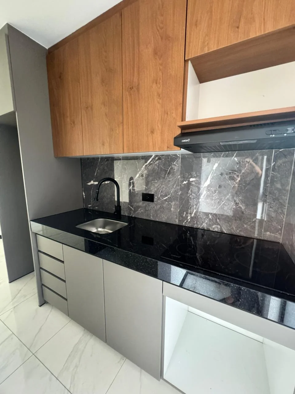 cocina, cajonería baja y box en baños,
