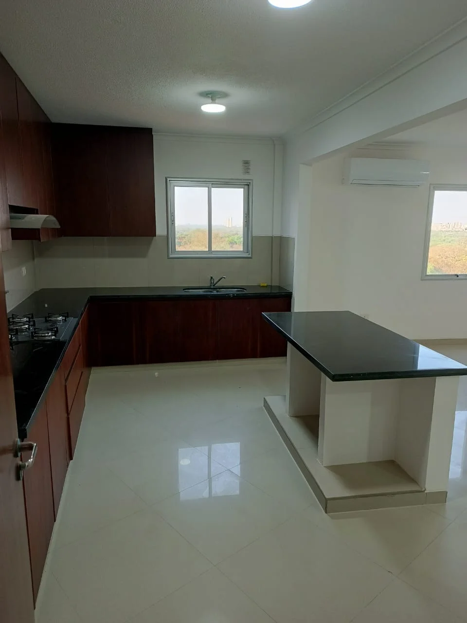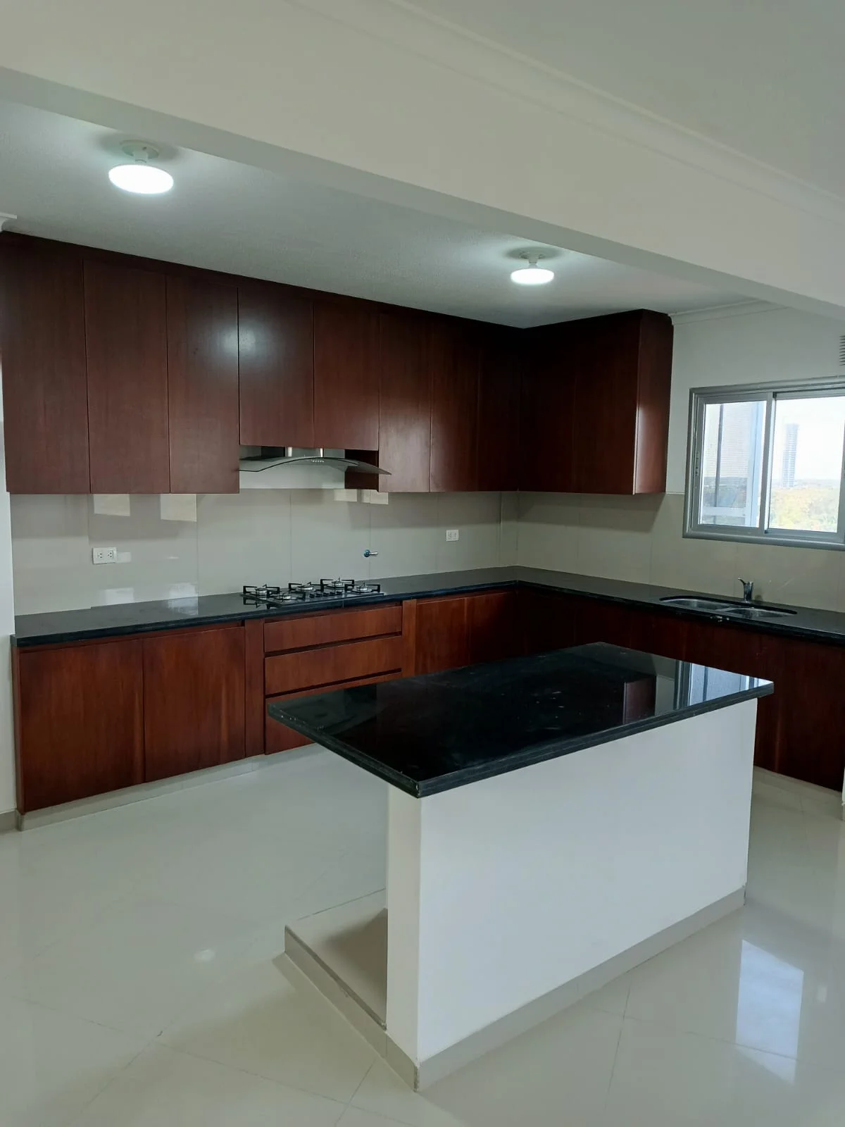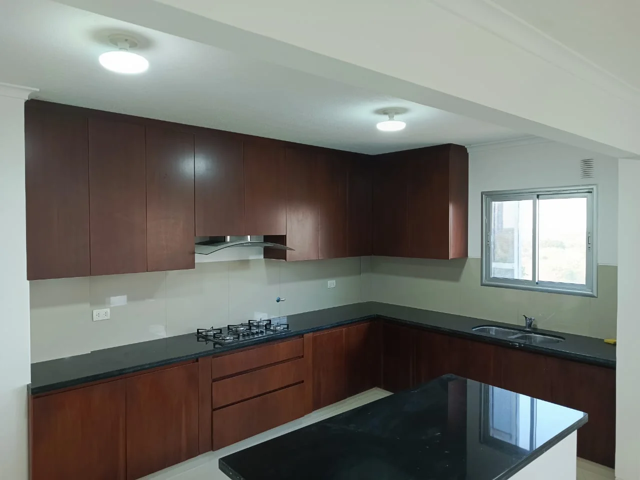 - Cocina tipo americana con cajonería alta y baja, campana extractora.
