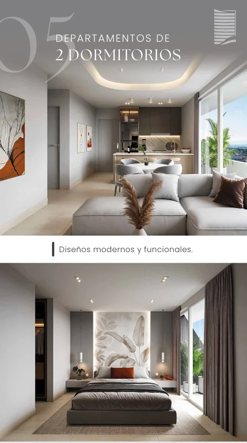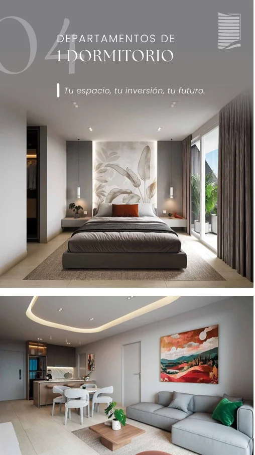 Edificio de 18 pisos con departamentos de 1 y 2 dormitorios