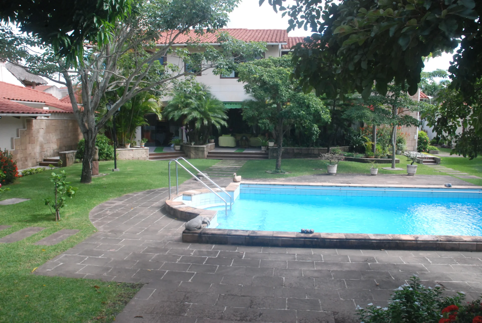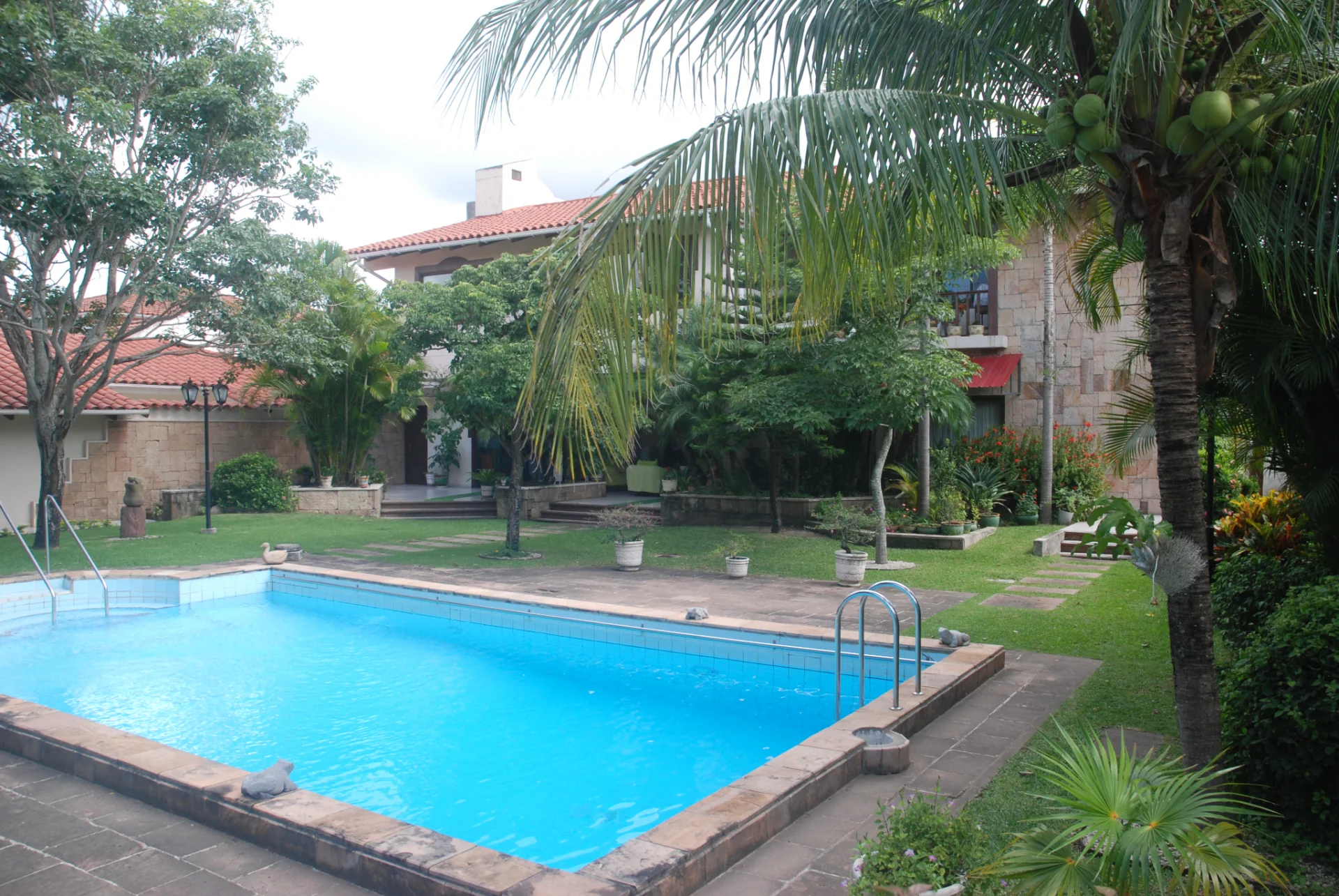La casa tiene 5 dormitorios en suite, living, comedor, cocina amplia full equipada con isla, comedor de diario ,escritorio, estar amplio, 2 depcias de servicio, lavanderia con sala de planchar, ascensor interior, sala de recepcion grande con churrasquera y chemenea, sauna, jacuzzi, piscina 18m, jardine grande,2 parqueos techados y entrada de servicio.