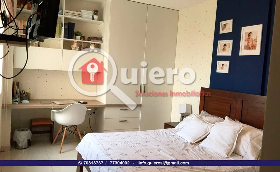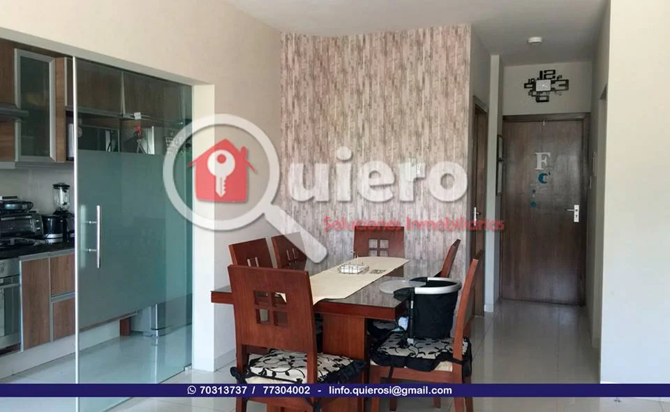 EN VENTA Departamento zona Norte, Hamacas. Ÿ“ Contacto 70313737 / 77304002 Ÿ“ [email protected] œ” 2 Dormitorios œ” 1 Baño œ” Cocina œ” Sala comedor œ” Area de lavado. Totalmente Equipado. œ” Con aires œ” Cortinas œ” Horno de cocina œ” Estractor œ” Calefon œ” Muebles empotrados œ” Mallas y lamparas Superficie del Dep. 76mt2 sin incluir área de lavado ni garaje Precio: 105.000 $us