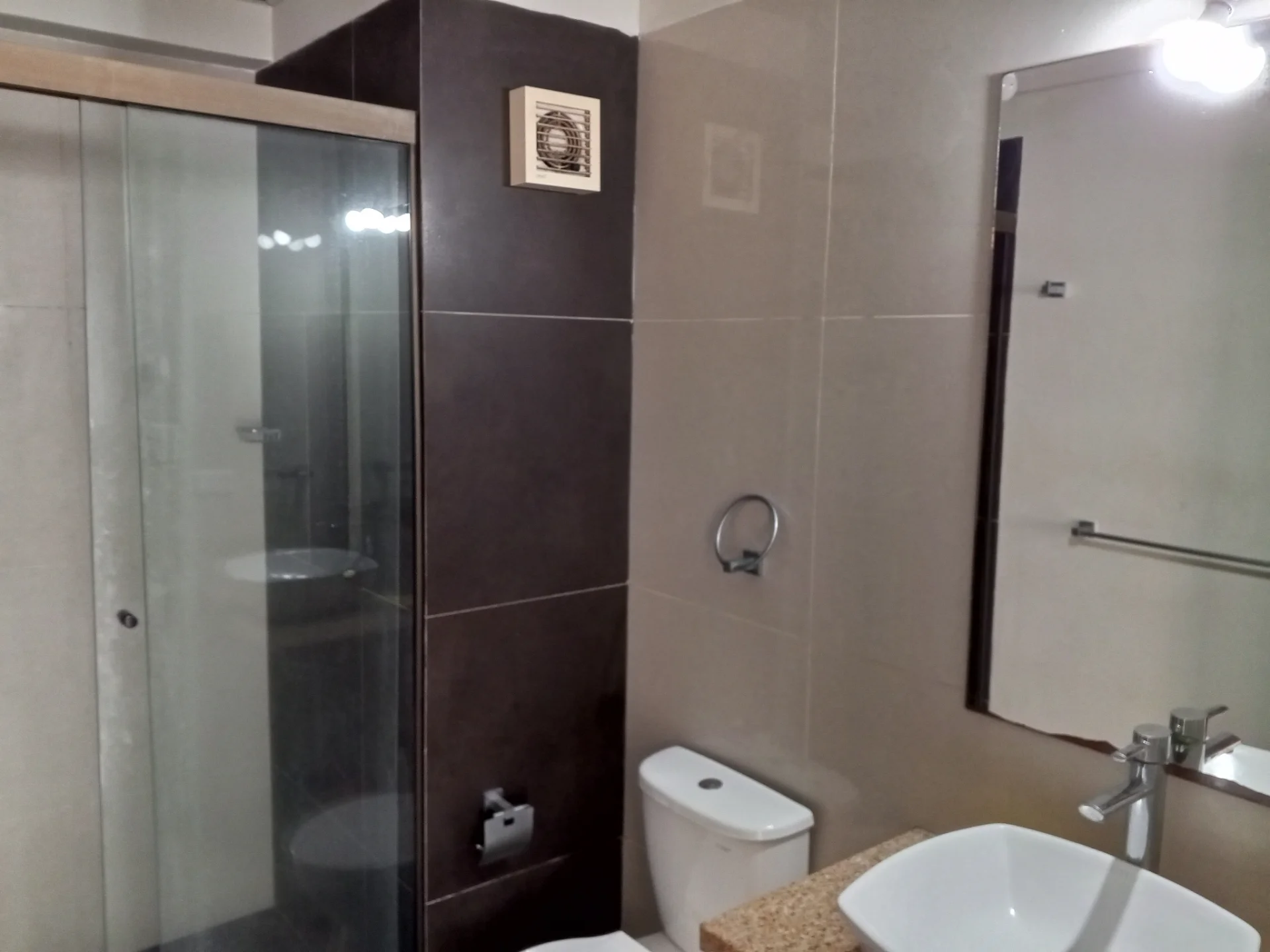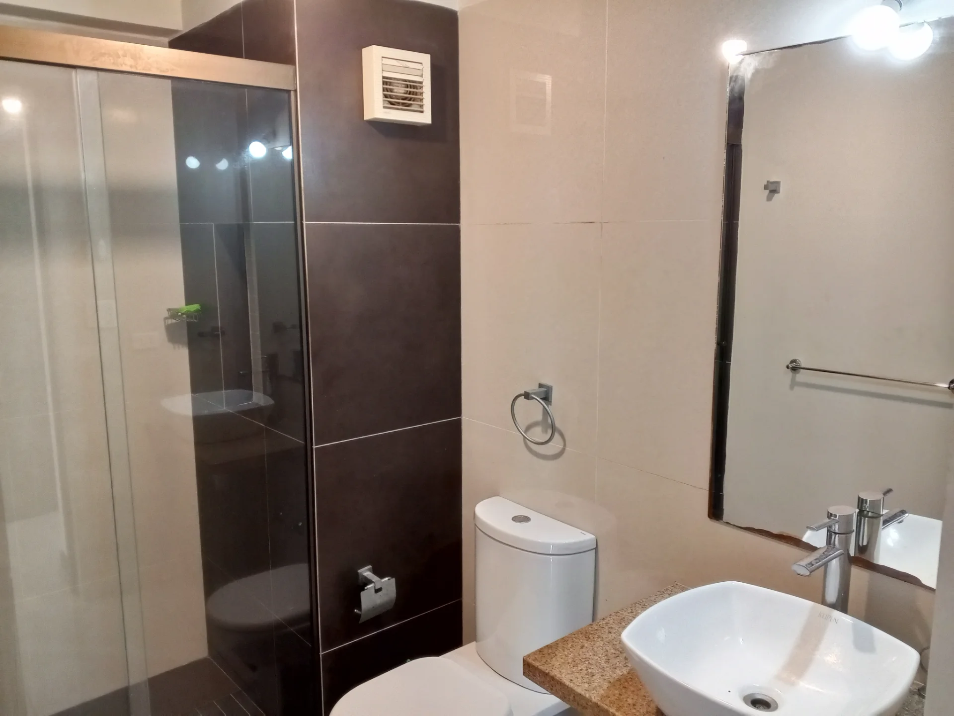 1 baño compartido equipado con box y espejo.