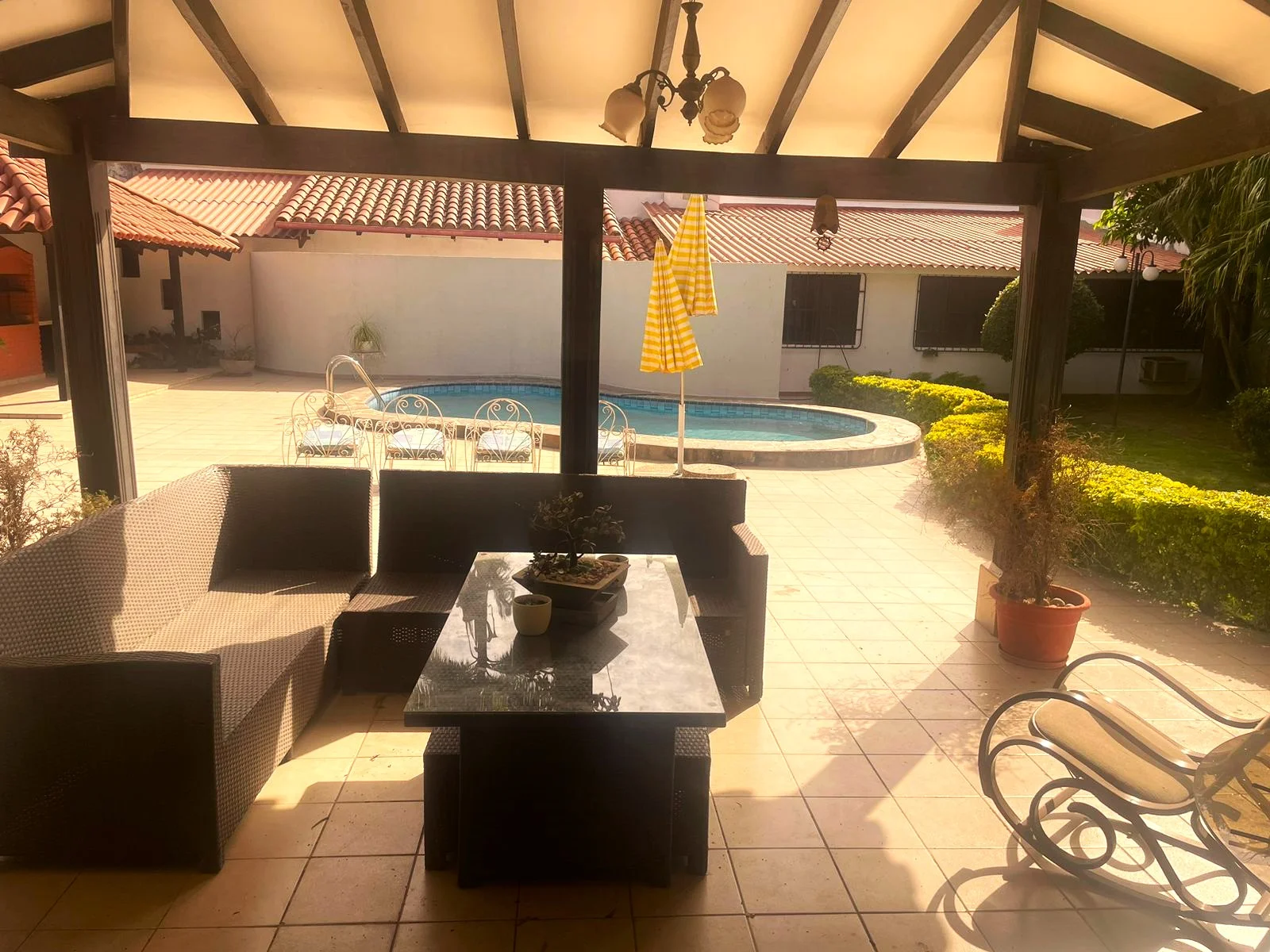 Galería con churrasquera y piscina