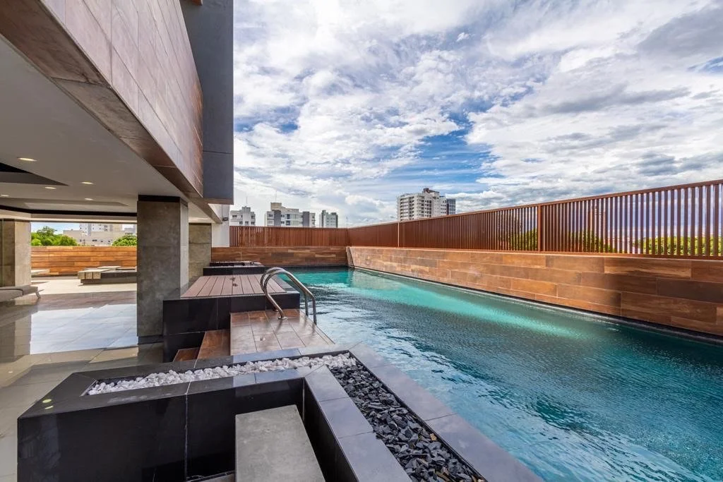 Área social: gimnasio sala de cinesala juegoschurrasqueras c/frigobar y cava de vinosPiscina