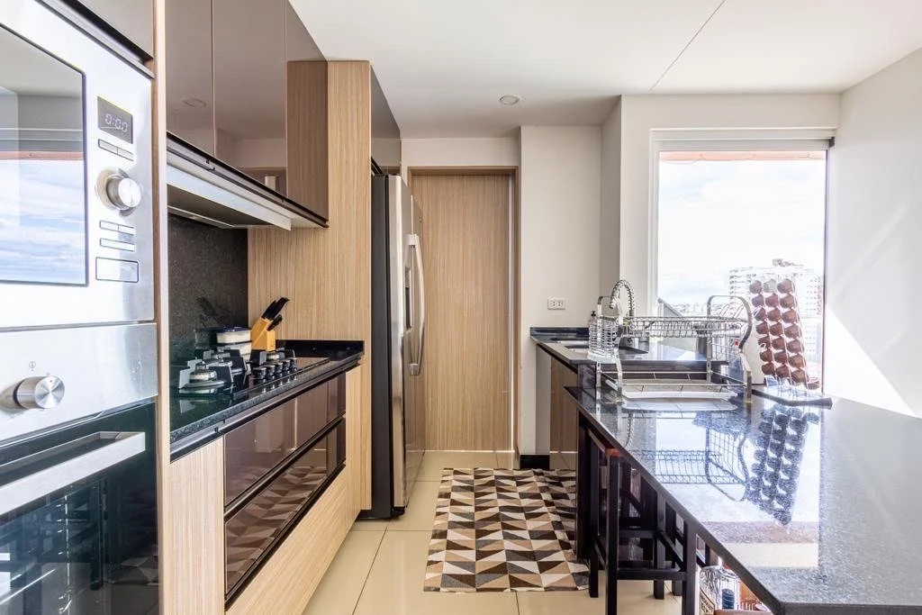 * 2 dorm. (1 suite)* 1 baño a compartir* cocina equipada* living - comedor * área de lavandería* a/c en todos los ambientes* 1 garaje y baulera* Vestidor, roperos, cortinas
