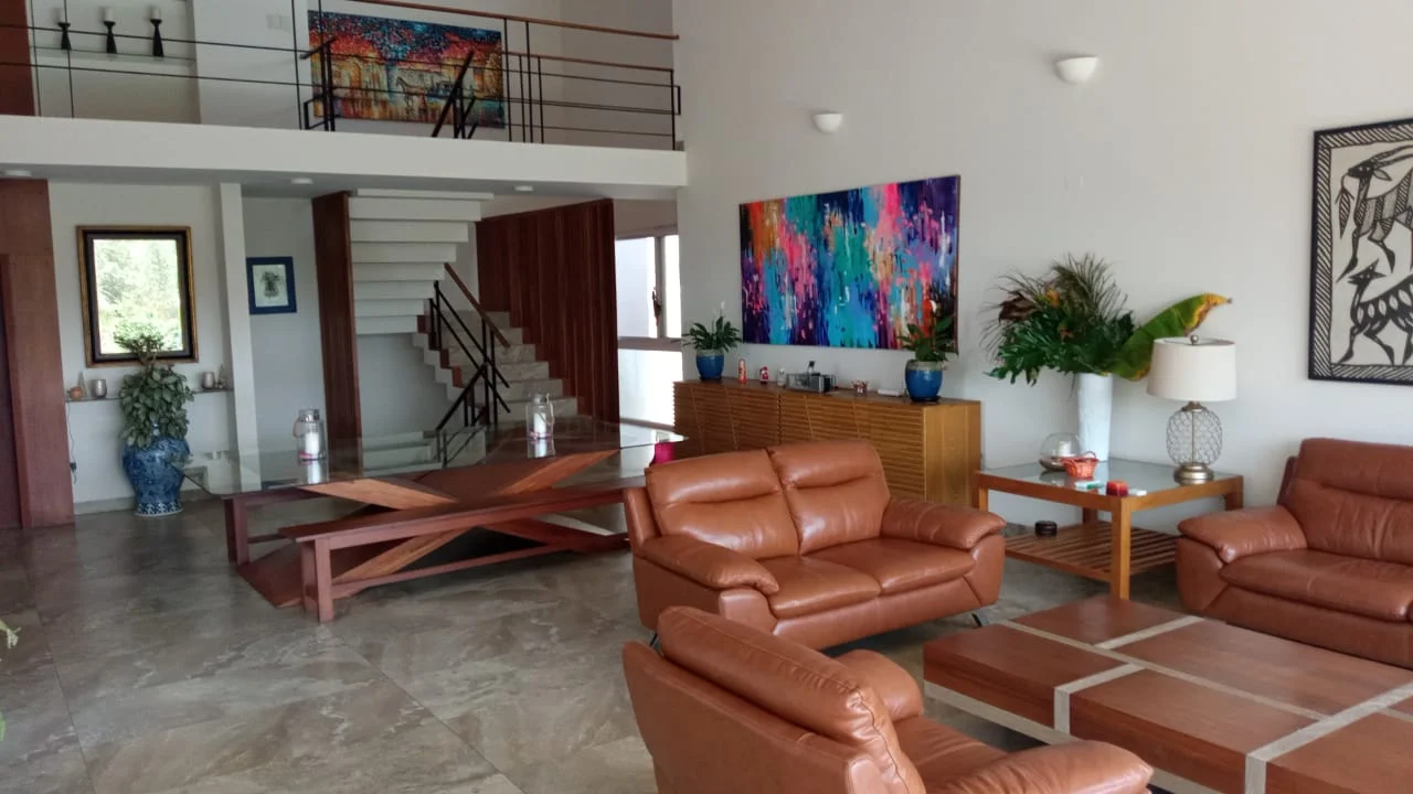 VENTA.-Hermosa casa de Estilo amoblada de Encanto en el Urubo Golf con 518 m2 de construcción y 1.282m2 terreno.